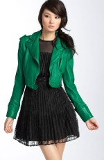 For something a bit more dressy that maintains a punk edge, consider Marc Jacobs’ washed lambskin leather moto jacket. It comes in a soft hunter green that pairs beautifully with a pencil skirt and a plain white button down. Of course, it looks equally as good on the weekends with your oldest pair of jeans. For those of us partial to head-to-toe black, Diane von Furstenberg‘s emerald green cropped motorcycle jacket adds just just the right pop of color. Plus, it looks good with an LBD, another fall wardrobe staple.