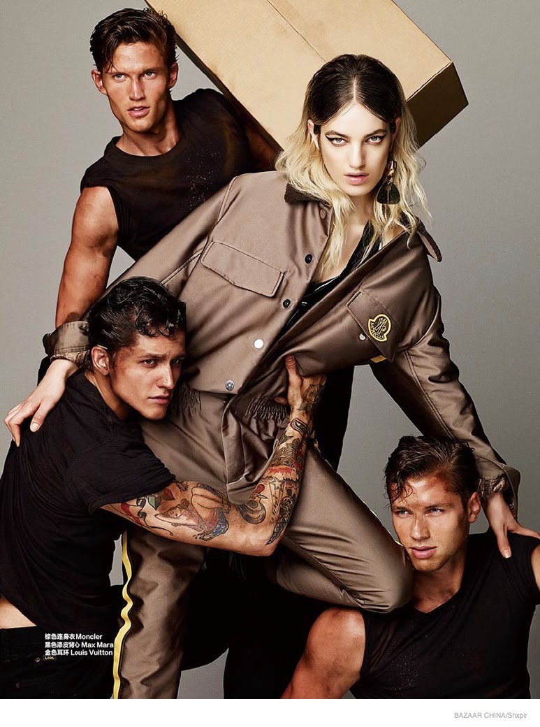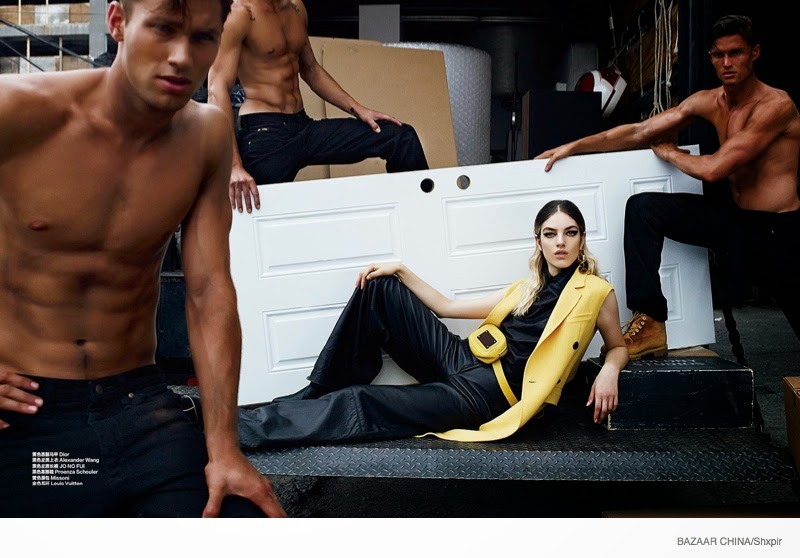Model Movers-Photographed by Shxpir for the October 2014 edition of Harper’s Bazaar China, Leebo Freeman, Jules Hamilton and Kacey Carrig are model movers. Joined by model Naomi Preizler, the trio visit a storage unit to unload materials. Working up a sweat, Leebo, Jules and Kacey are captured in minimal black outfits and classic work boots styled by Ada Kokosar. / Makeup by Morgane Martini. Hair by Marco Braca. Courtesy of – thefashionisto.com