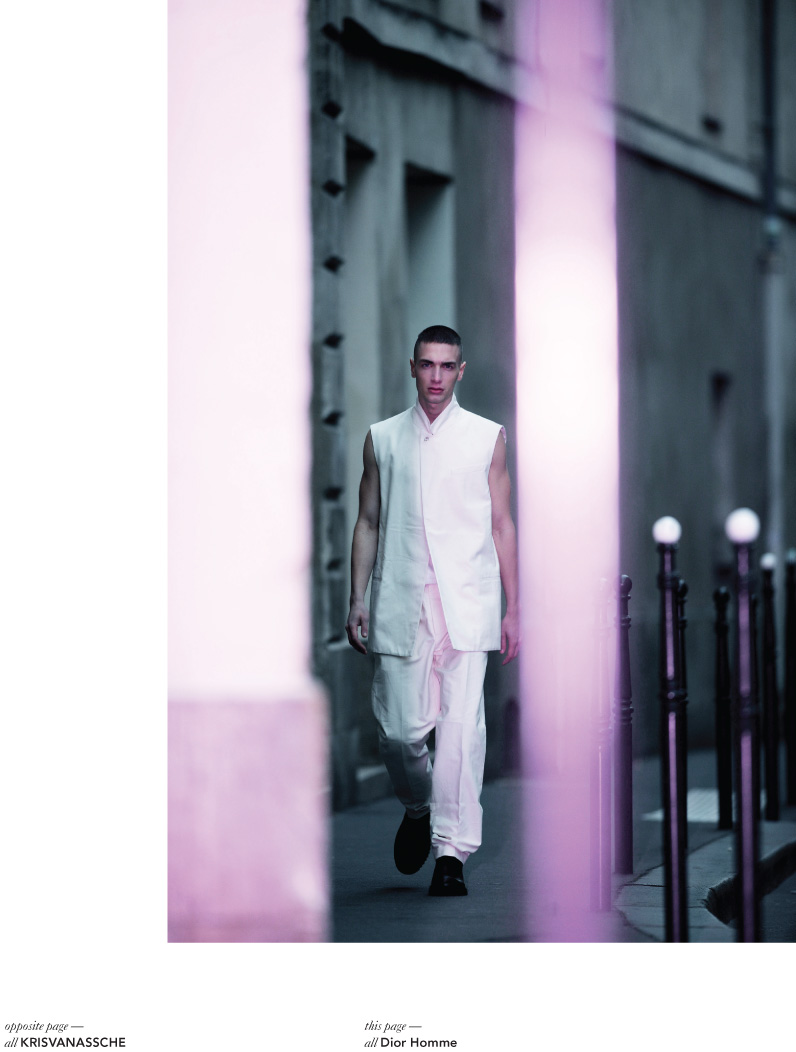 Solo Act–Nathalie model Lenny Müller is pho­tographed by Joe Lai for a new story in Hunter mag­a­zine. Dressed in spring/​summer 2012 fash­ions by styl­ist Giuseppe Mag­istro, Lenny wan­ders the streets in clean sil­hou­ettes from Dior Homme, Kris Van Ass­che, Ann Demeule­meester and more. /​ Groom­ing by Mayumi Oda. Courtesy of – thefashionisto.com