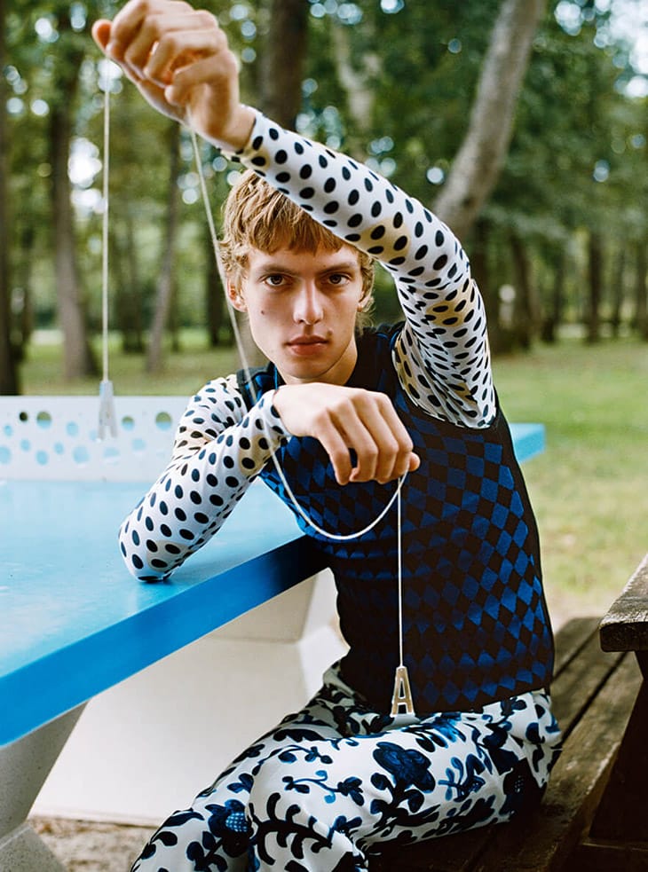 “Top model Leon Dame stars in Arthur Arbesser‘s Spring Summer 2020 campaign lensed by fashion photographers Driu Crilly & Tiago Martel. In charge of styling was Hannes Hetta, with casting direction from Rene de Bathory.” – Malemodelscene.net