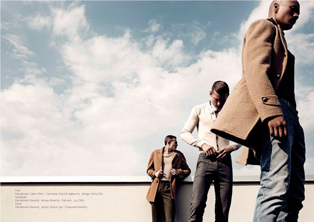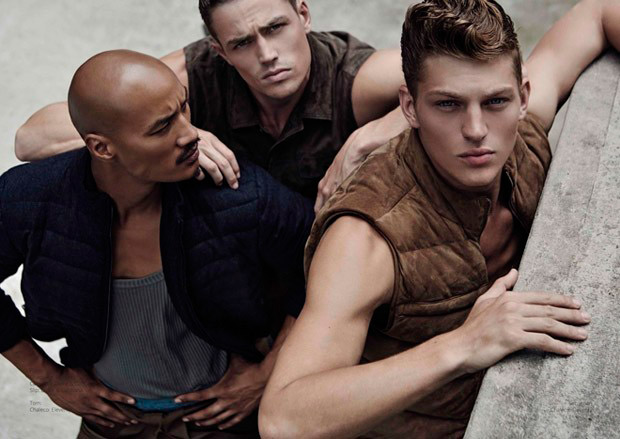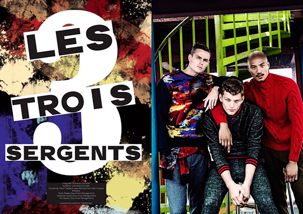 “Paolo Roldan, Sebastian Sauve and Tom Barker photographed by Leonardo Corredor, for the Fall/Winter 2015 coverstory of Risbel magazine. Grooming by Yianni Tsapatori.” – FY Magazine.es