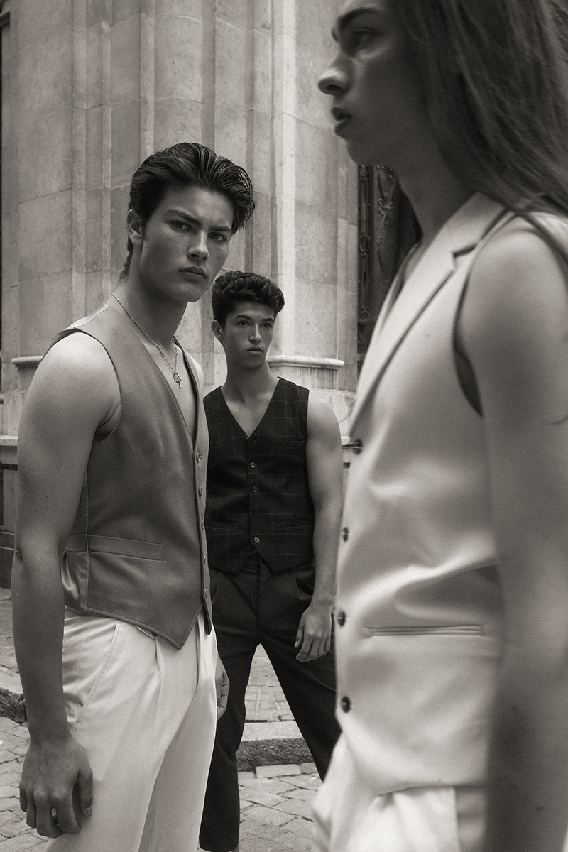 “Carlos Morales at Sight Management, Axel Gomez and Antonio Pazos, shot by Andrés Jiménez Guerrero and styled by Ismael Sanchez, in exclusive for FY Magazine! Online.