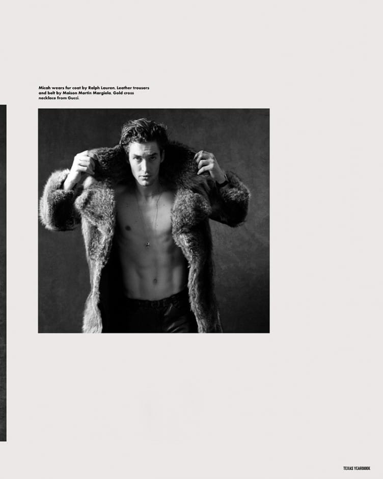 “Micah Dix captured by the lens of Baldovino Barani, for the latest issue of Texas Yearbook.” – FY Magazine.es