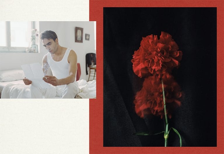 “Javier des Leon and Rytas Matuliauskas captured by Alex Cascallana with pieces by Carlota Barrera and Levi’s in exclusive for Fucking Young! Online. The editorial takes its base in one of the Spanish traditional costumes. The masculinity of the bullfighter costume plays its role along the homoerotical component in it. A love story it is then built between the matador and a fisherman, who exchange letters as a form of communication. Alex Cascallana also draw upon the language of flowers as a delicacy symbol and a possible prove of love.