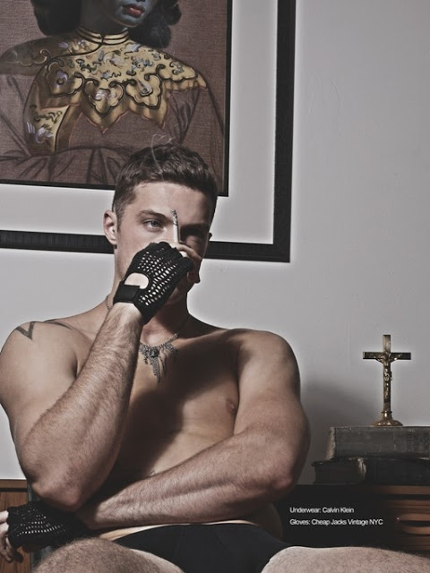 Model Lewis Holland Clarke of MINT Management NY is photographed and styled by Andy Houghton in the story ‘One Blue Moment’ for the premier issue of ADON magazine, with grooming by Lesley Wilks. Courtesy of http://homotography.blogspot.com