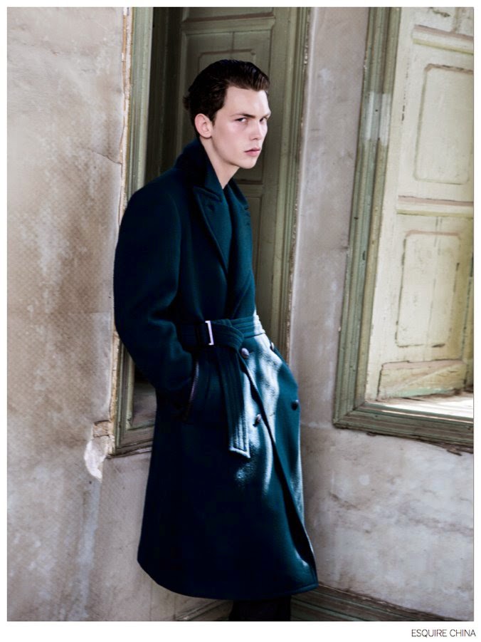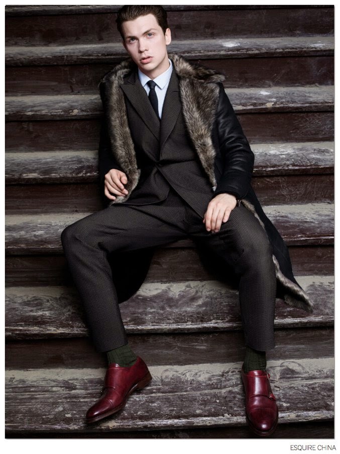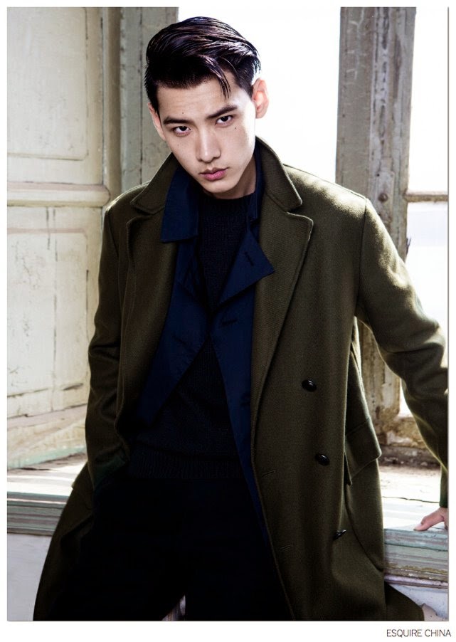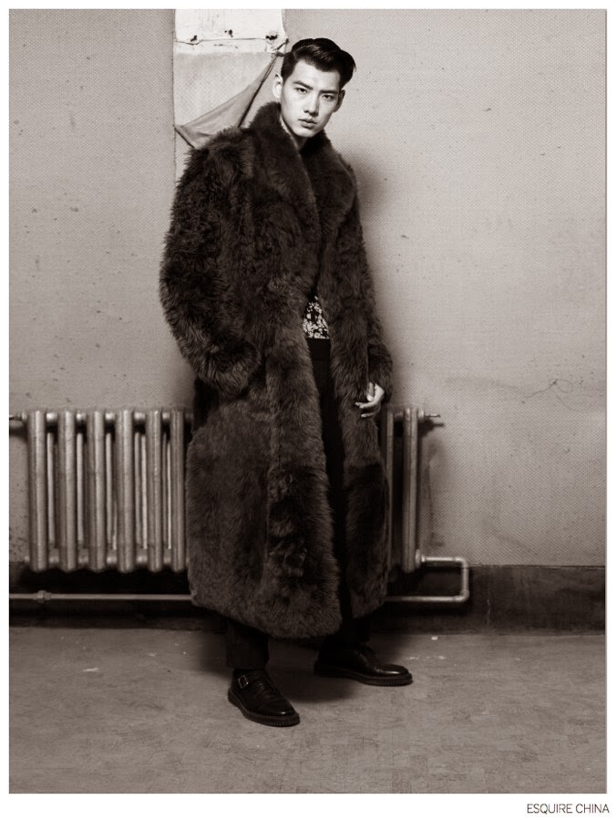 Coat Weather-Appearing in the October 2014 edition of Esquire China, models Li Xiang and Jay come together for an elegant fashion spread lensed by photographer Yu Cong. Featuring styling by fashion editor Will Wu, Li and Jay bring a sophisticated edge to the season with a luxurious selection of outerwear that highlights varied fabrics and materials such as suede and fur. / Makeup by Ricky. Hair by Zhang Xio. Courtesy of – thefashionisto.com