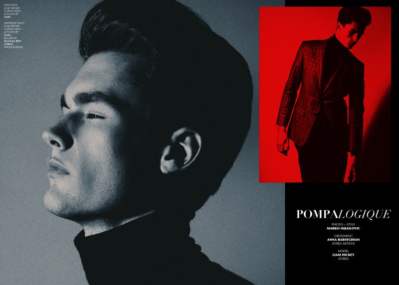 Cleaning Up Liam–Sitting for a striking black & white photo update, Ford model Liam Hickey is photographed by Marko Mijailovic. Finding the charm in youth and sophistication, Liam is a stunning vision in tailored suiting. / Grooming by Anna Barseghian (Ford Artists). Courtesy of http://thefashionisto.com