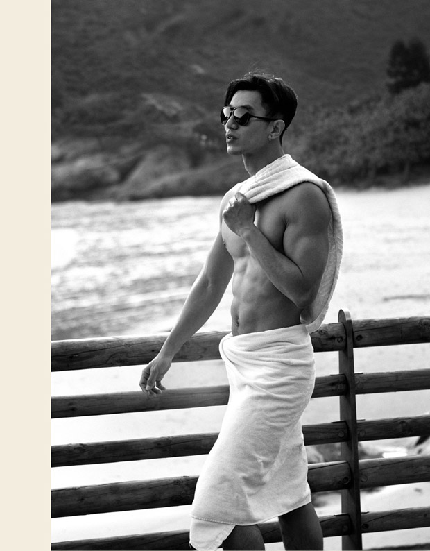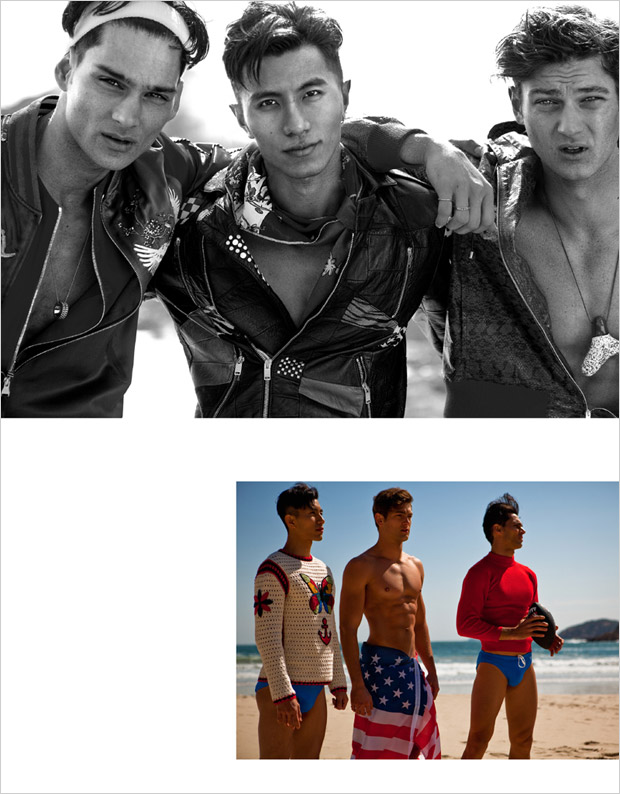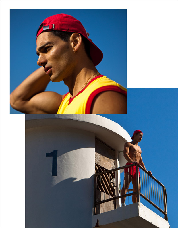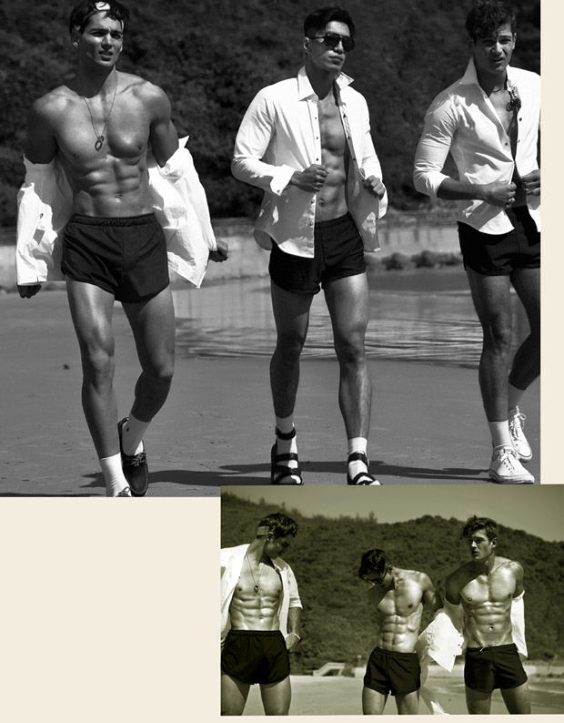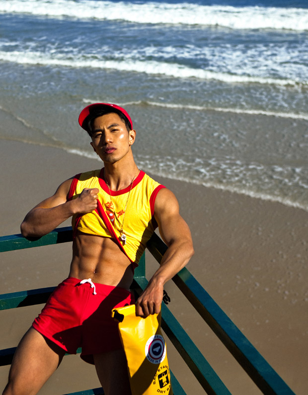 “Lifeguard Squad story captured by fashion photographer Baldovino Barani features models Taner Sigirtmac at ModelOne, Wilfred Huang at Primo, and Donovan Prince at Urban. In charge of styling was Cheryl Leung, with grooming from Gloomy Kwok at Hong Kong Makeup Artist by Karen Yiu using Tom Ford for Men. For the session models are wearing Spring Summer 2016 looks from Saint Laurent, Versace, Gucci, La Perla, Polo Ralph Lauren, Dior Homme, Ermenegildo Zegna, Gap, Ray Ban, and The Hong Kong Life Saving Society.” – Malemodelscene.net