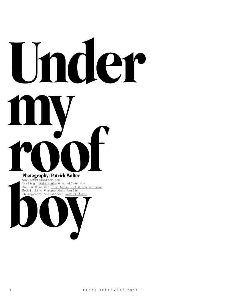 Poignant Energy–Lino Meiries resurfaces in this month’s edition of Switzerland-based magazine, FACES. Styled by Bodo Ernle (Nina Klein), Lino wears fall pieces from Prada, Cheap Monday, Killian Kerner and other labels for a moody shoot, captured by the lens of Patrick Walter. Courtesy of – Homotography