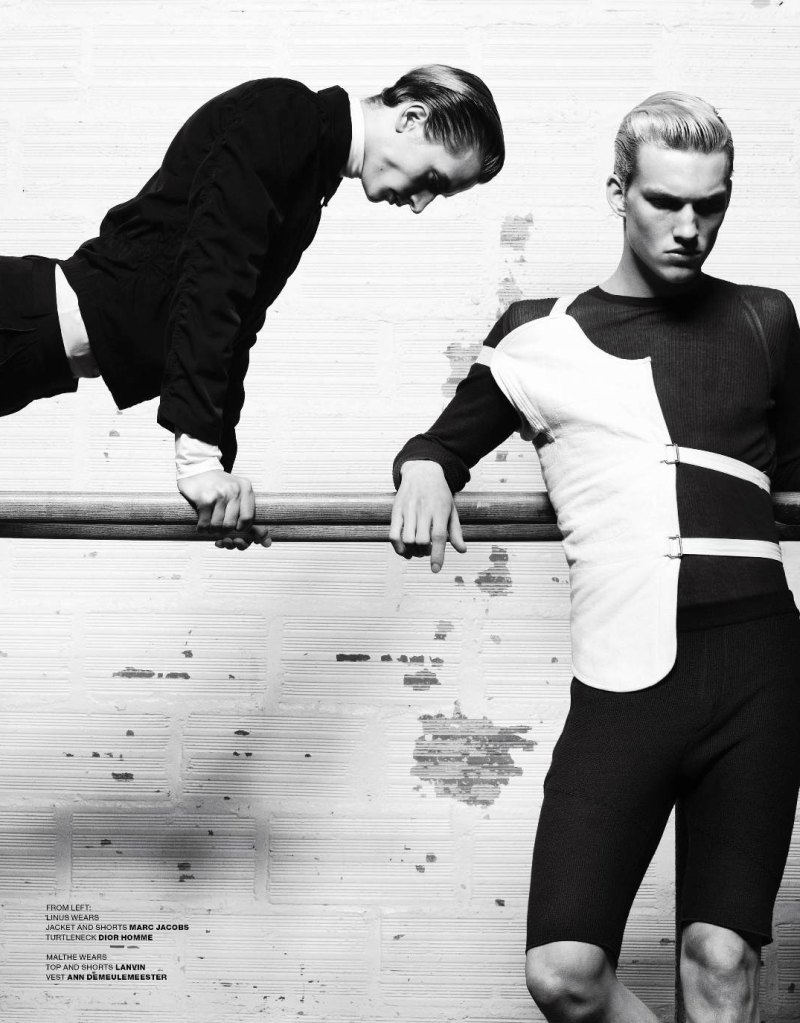 Captured in black and white by Kacper Kasprzyk, Aiden Andrews, Malthe Lund Madsen, James Smith, Linus Gustin, Peter Bruder and Taras Koltun come together for VMAN’s upcoming issue. Putting spring’s fashions to the sporty test, the magazine’s new fashion editor, Tom Van Dorpe pulls together a wardrobe of Louis Vuitton, Dior Homme and other labels for a modern rendezvous at the Gymnasium. Courtesy of – thefashionisto.com