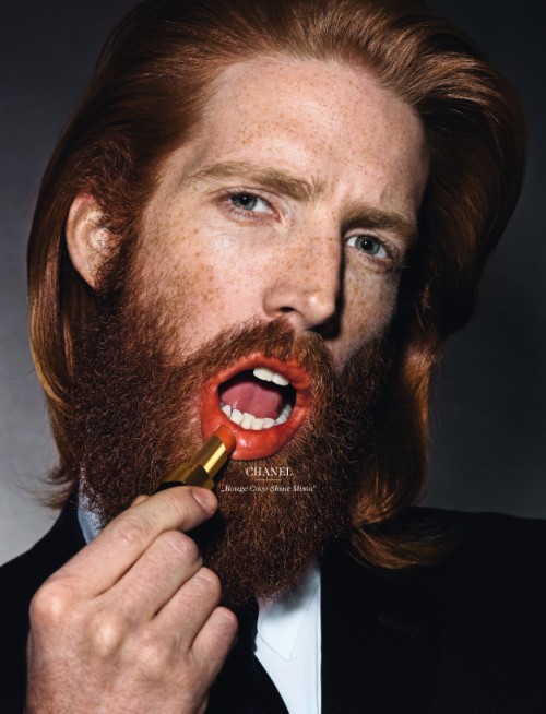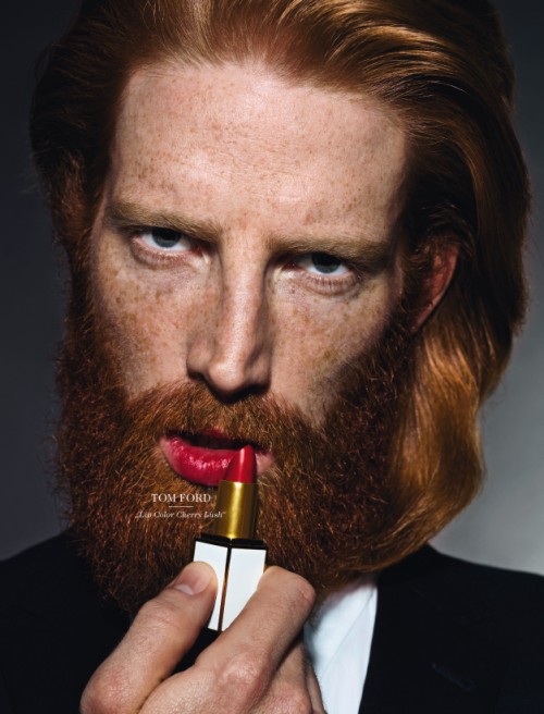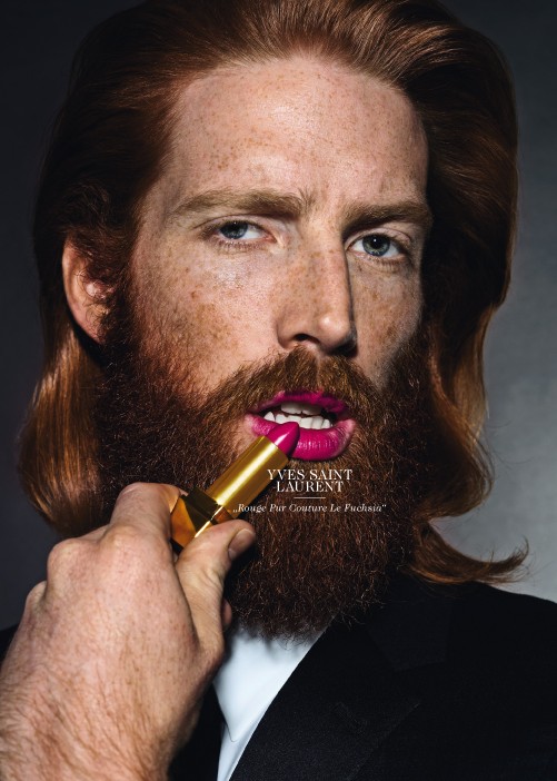 Johnny Harrington is photographed by Armin Morbach in Lip Service, a beauty editorial that appears in the new TUSH no. 23, out next week. Courtesy of Homotography.