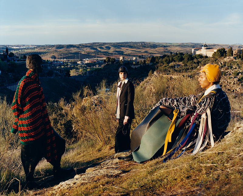 Taking the playful masculinity that has characterized the brand’s evolving Men’s collections to a new level, Benjamin Bruno styled a group of young models for the latest hardcover look book. The collection, which had its runway debut in Paris last January, used the historic locations of Piedra del Rey Moro and Museo de Santa Cruz in the Spanish city of Toledo as its picturesque backdrop.