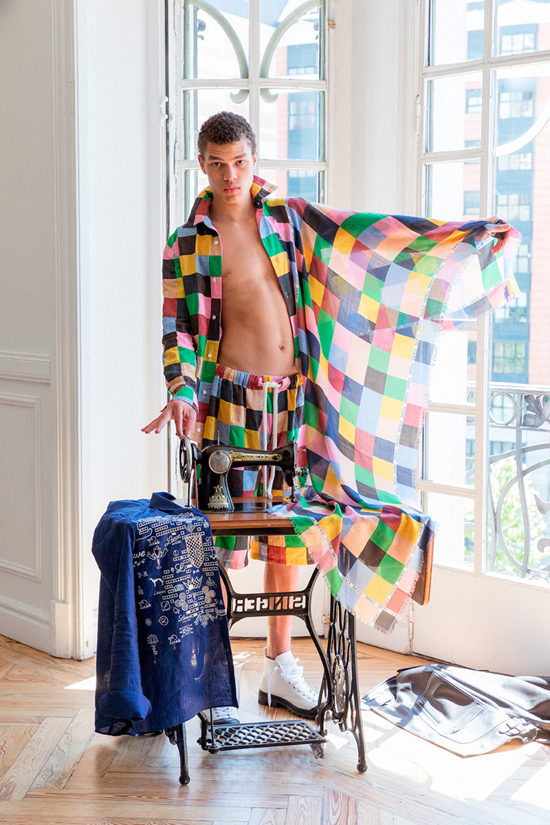 “Decorated with candy-striped ribbon and strewn with rainbow pom-poms, the LOEWE headquarters on Place Saint-Sulpice in Paris is transformed into a naïve playground for the Men’s Spring/Summer 2019 collection designed by Jonathan Anderson. A series of vitrines are trimmed in cotton fringe and wrapped with pastel tape, each housing a cornucopia of LOEWE accessories and Ready-To-Wear pieces that celebrate a ercely individualist spirit.