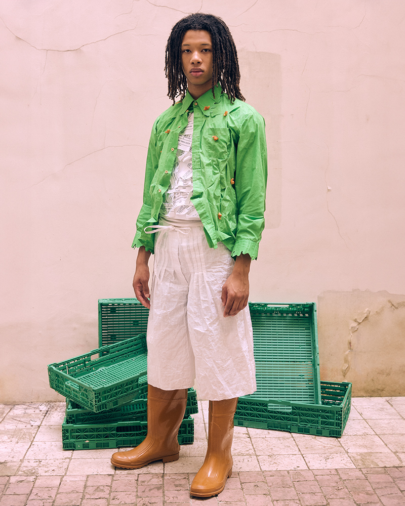 Part of a game, transformed by imagination—this look book from Loghan Troadec captures the poetic tension between childhood wonder and pastoral grit. Le Portrait d’un Paysan is not just a collection; it’s a meditation on movement, memory, and the quiet power of rural life.
