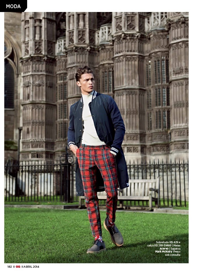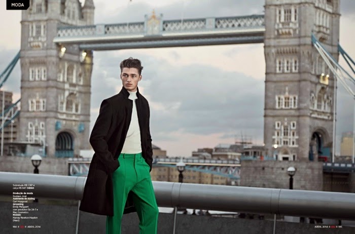 London Calling–GQ Brazil travels to England for its April issue. Tapping Harvey Haydon for a story, the British model is photographed by Greg Swales and styled by fashion editor Antonio Branco. Taking in British sites, Harvey heads into fall with sharp looks from Brazilian labels that include Colcci and Coca-Cola Jeans. Courtesy of thefashionisto.com