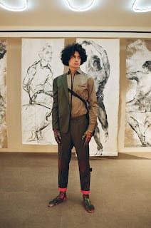 As always, Artem Shumov uses natural fabrics: thick wool, cotton and patches of exclusive hand-made fabrics from Chinese province Yunnan and Chinese city Suzhou. Color scheme consists of dark tones of black, khaki and red.” – Malemodelscene.net