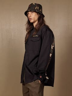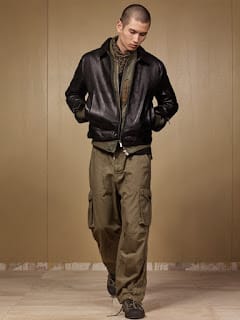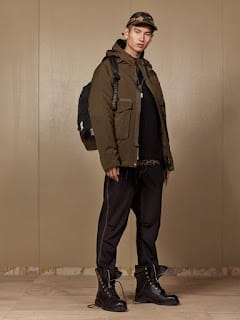 “A new vision. A new perspective. ZARA SRPLS explores the appropriation of military inspired clothing into everyday dressing, that’s made it a foundation for how people dress today. Adopted by and, now, inspired by musicians, actors and activists, khaki and uniform pieces have, for decades, been part of the visual language of rebellion and counter culture, as well as a neutral canvas for individual style.“” – Malemodelscene.net