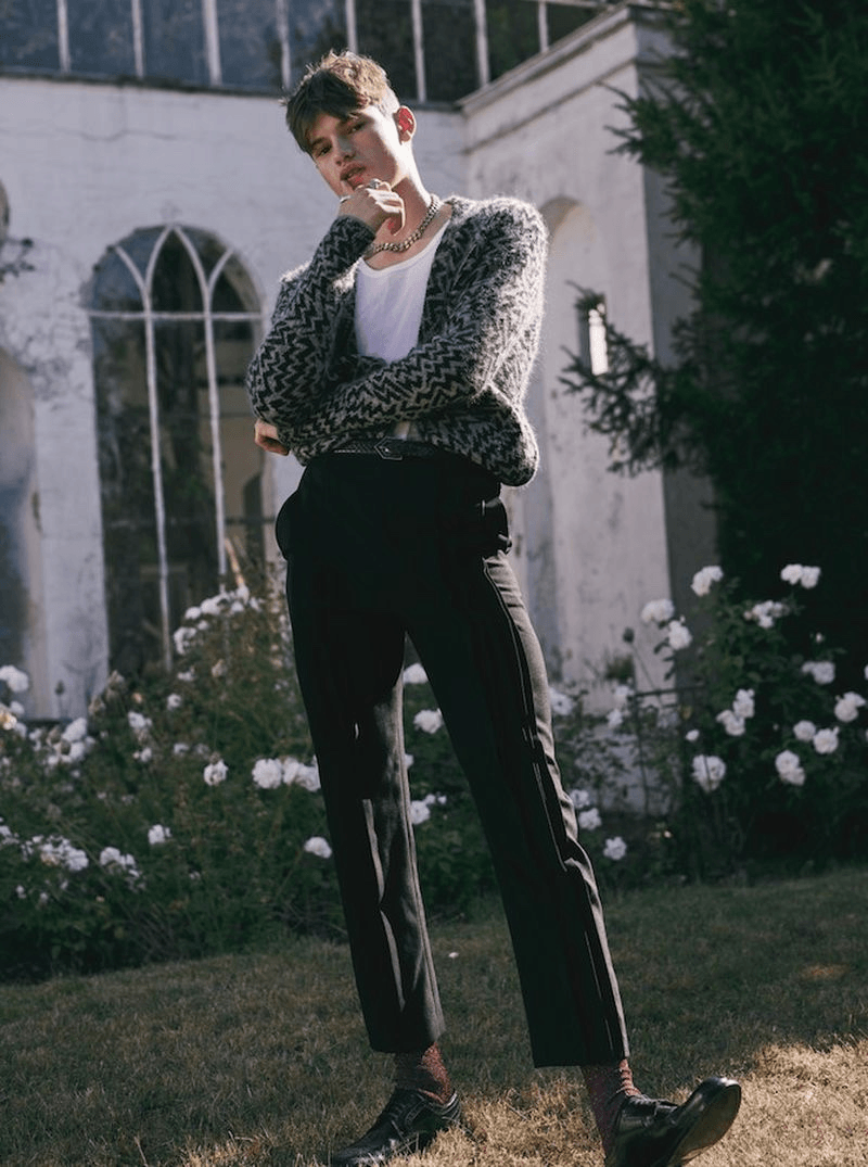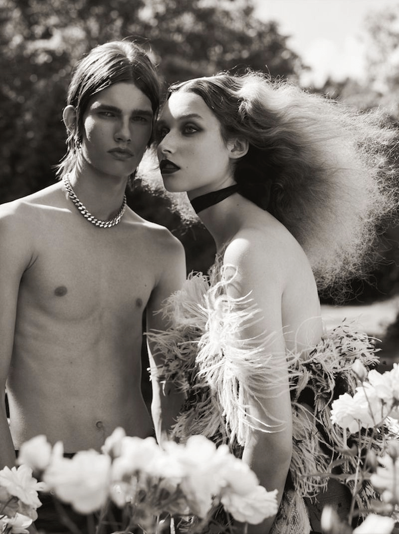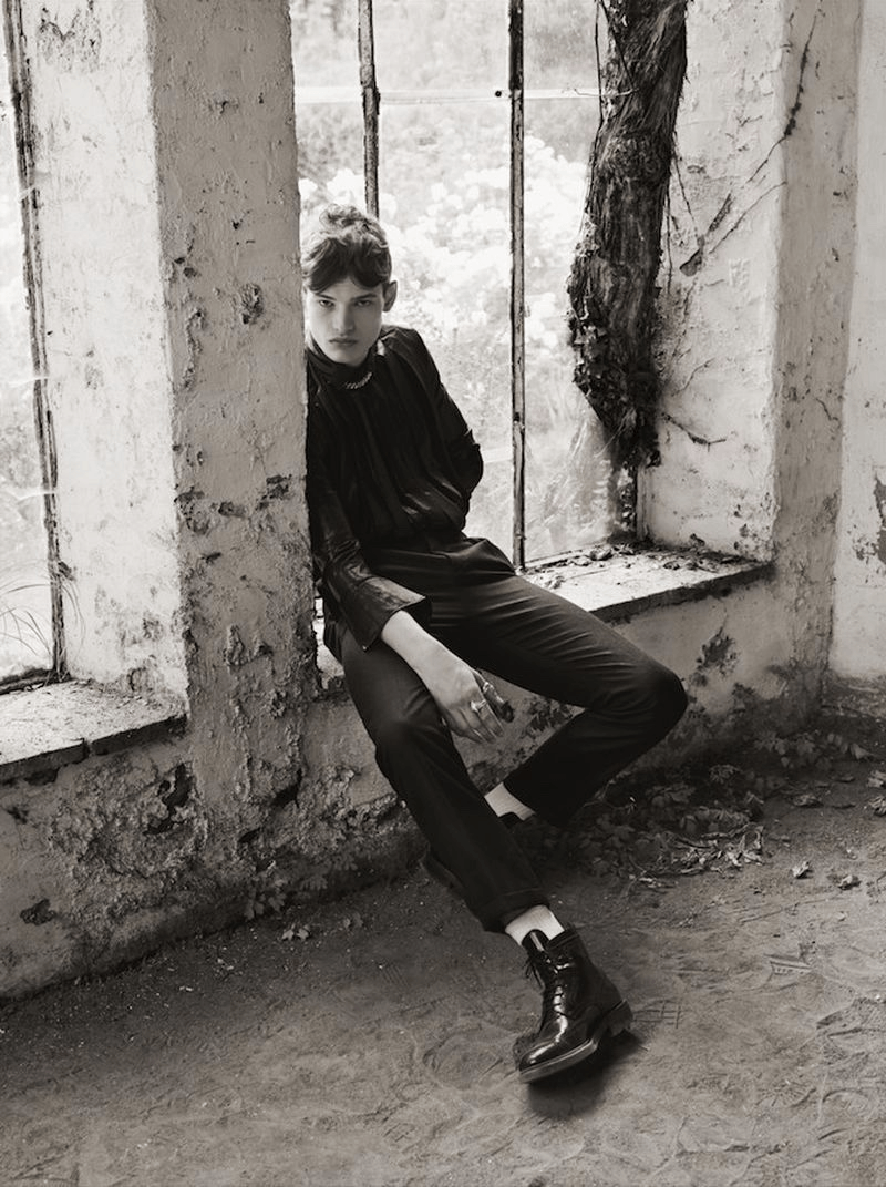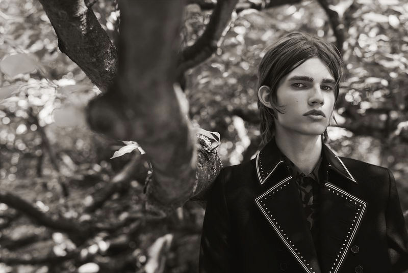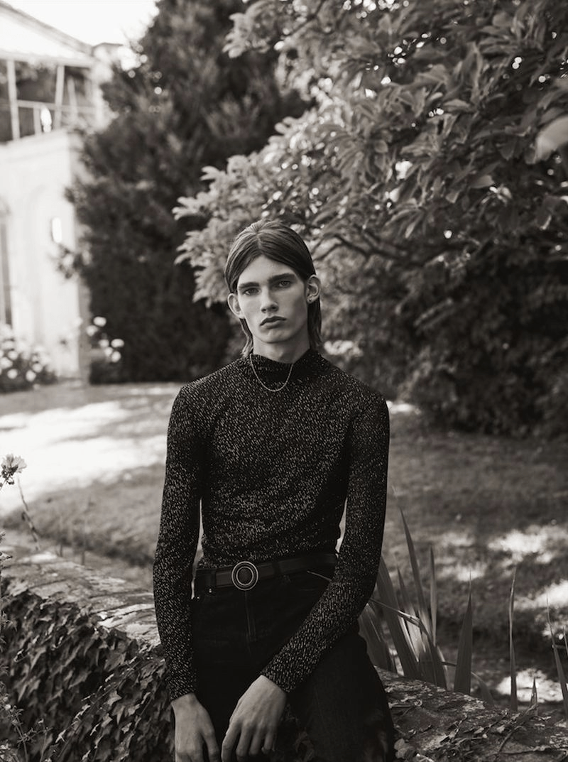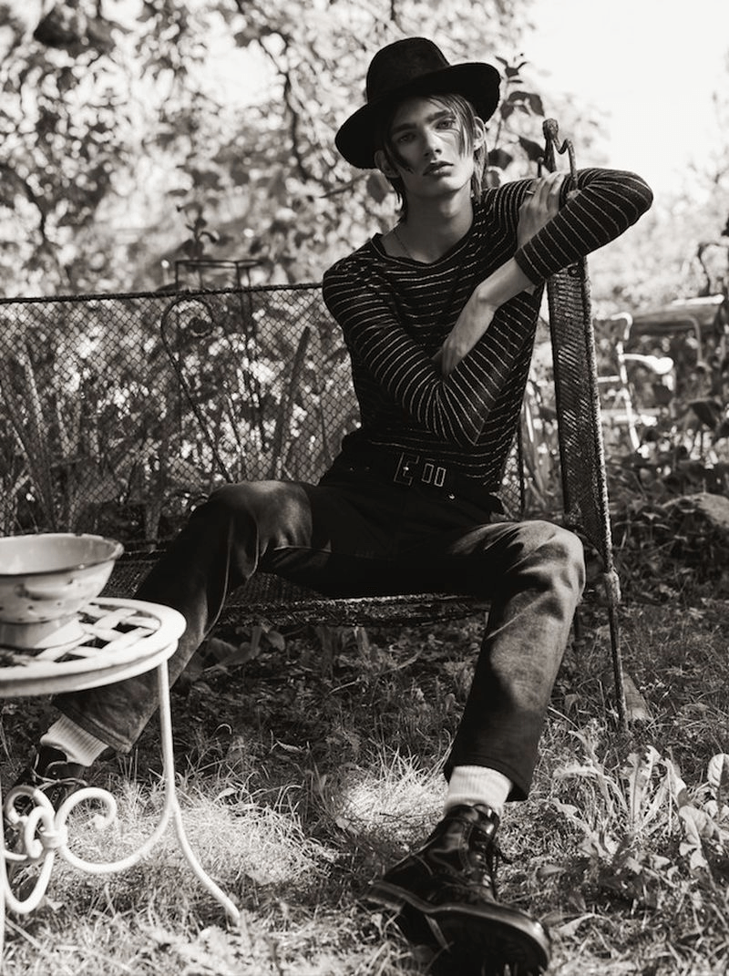 “Models Louis Goeckenjan and Lukas Gomann embrace a moody demeanor as they take to the pages of H magazine with a story lensed by photographer Zeb Daemen. The pair ventures outdoors, posing nonchalantly in a fall-winter wardrobe. Dark hues and modern looks come together under the direction of stylist Gabriella Norberg. A lineup of printed knitwear, shirts, and slim-fit pants spotlight the rock ‘n’ roll cool of Saint Laurent.” -TheFashionisto.com
