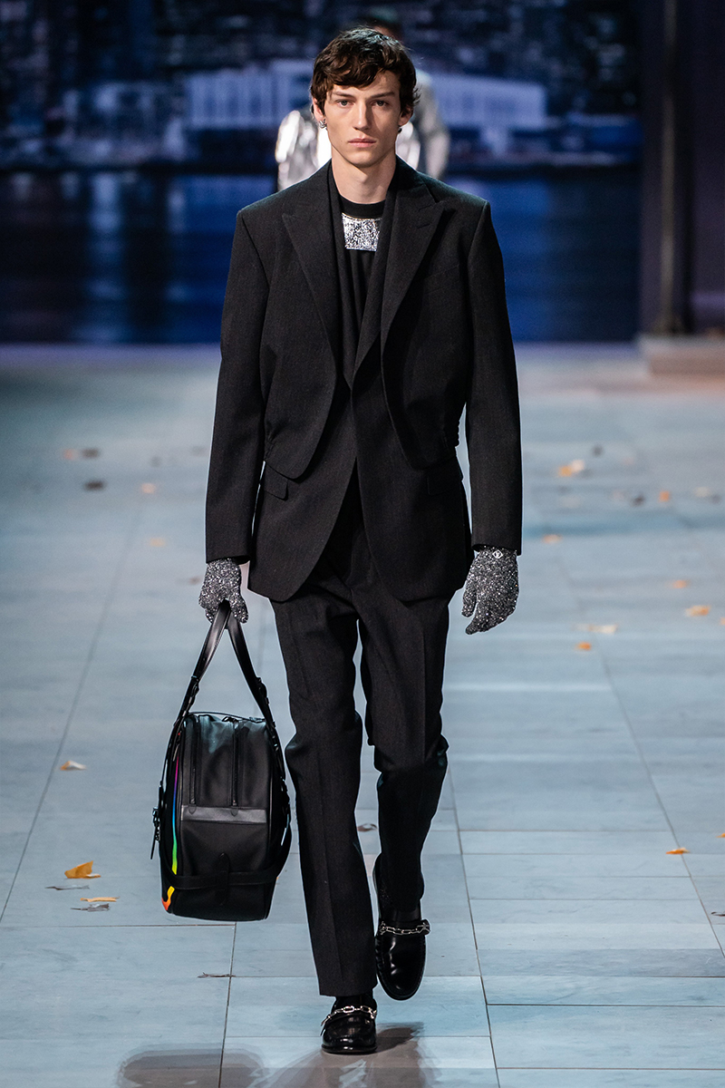 “Virgil Abloh presented his Fall/Winter 2019 collection for Louis Vuitton. We first got an idea of the mood when our invite arrived with a single bedazzled silver glove. While Abloh usually focuses on individual pieces and concepts, his reign at Vuitton appears to be more story driven. Following last season’s trip over the rainbow, we are now asked to imagine being in humble Midwestern surroundings and then transformed to the most captivating person in the world for the next fifty years. Perhaps a nod to the King of Pop signals the end of the nineties trend cycle that has easily dominated the past half-decade, opting once again to revisit the 80s. The decade of crack and Cold War.