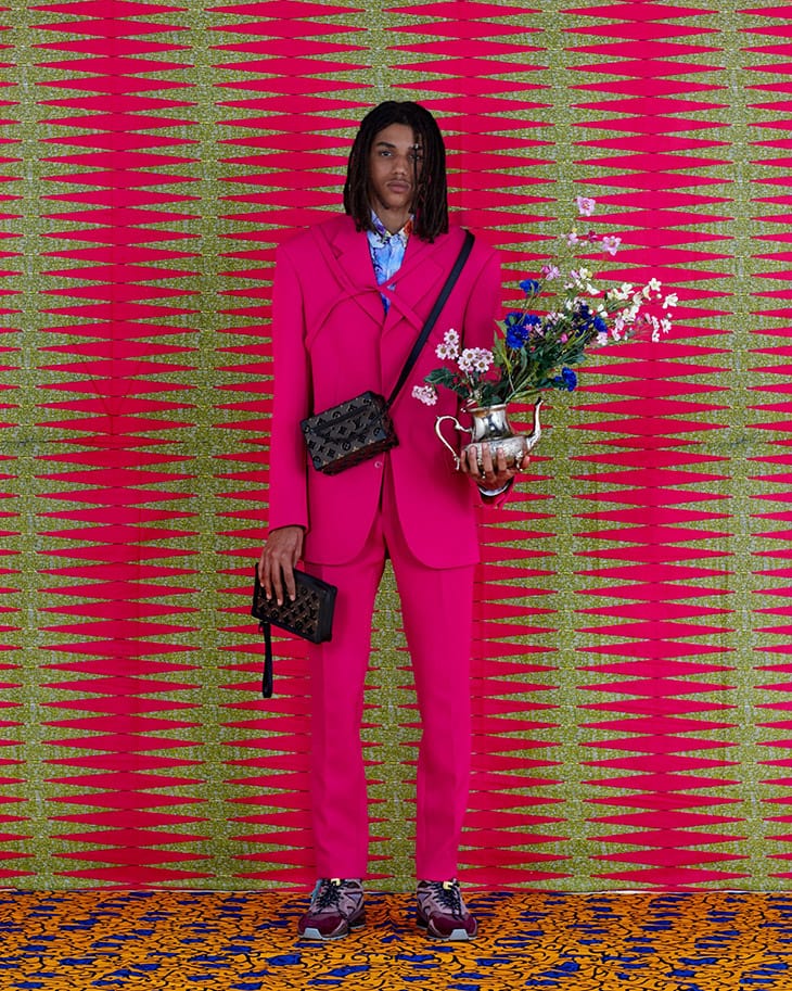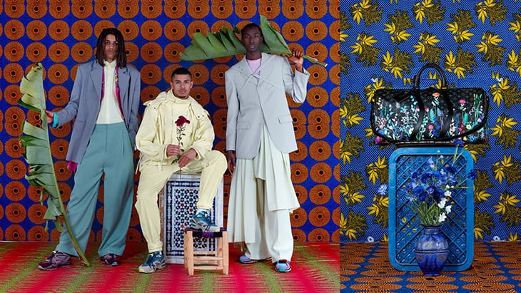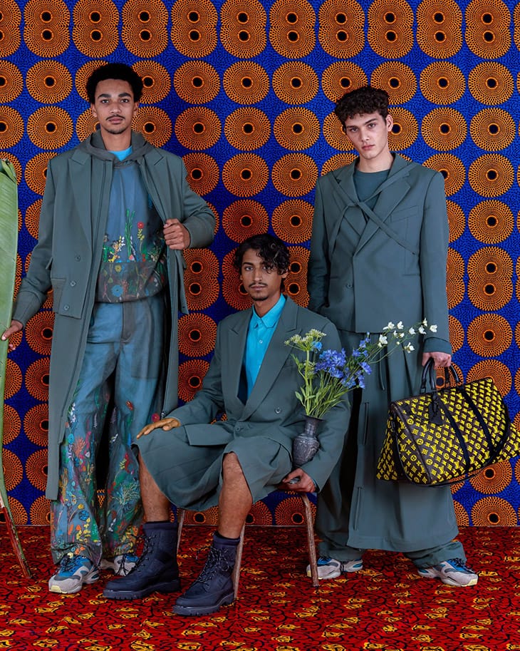 “French fashion house Louis Vuitton presented second chapter of their Spring Summer 2020 menswear campaign captured against a backdrop of traditional African motifs by fashion photographer Leonce Raphael Agbodjélou.