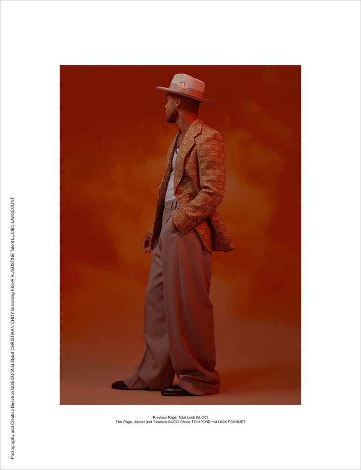British actor Lucien Laviscount stars in The Fox story captured for our MMSCENE Magazine‘s Spring 2020 edition by fashion photographer Que Duong. Grooming is work of beauty artist Kisha Augustine.