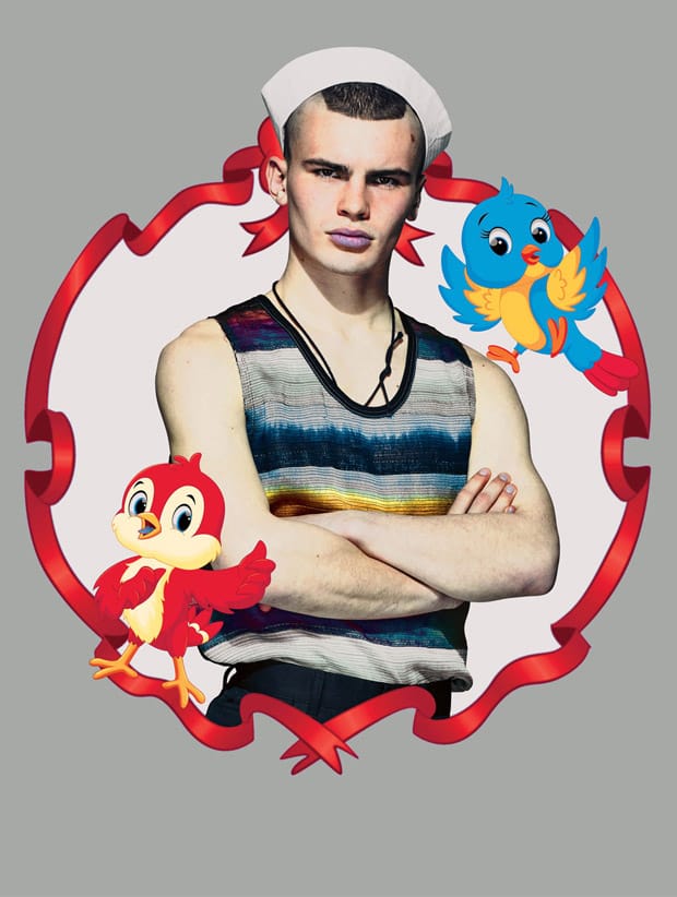 “Fashion photographer Steven Klein teams up with stylist Nicola Formichetti for The Boys of Summer story coming from the pages of VMAN Magazine‘s Spring Summer 2017 edition. Stars of the session are Lucky Blue Smith, Louis Bubko, Anwar Hadid, Neels Visser, Will Peltz, Matt Mcmahon, Pietro Boselli, Kit Butler, Bertold Zahoran, Diego Villarreal, and Patrick O’Donnell. Collage is work of Portis Wasp, with background illustrations from Dave Salamanca R. In charge of beauty were hair stylist Shon at Julian Watson Agency, and groomer Mark Carrasquillo at Streeters.” – Malemodelscene.net