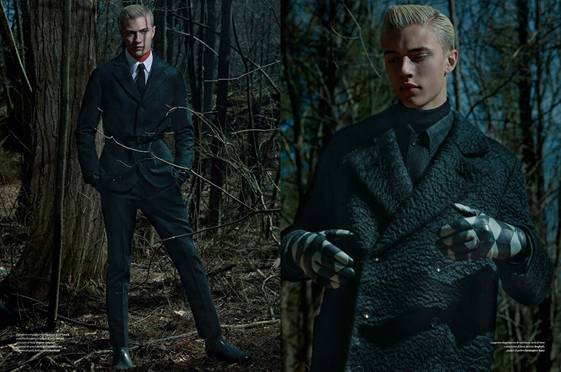 “Lucky Blue Smith photographed by Robbie Fimmano and styled by Anders Solvesten Thomsen, for the Fall/Winter 2015 cover story of L’Officiel Hommes Italy.” – FY Magazine.es