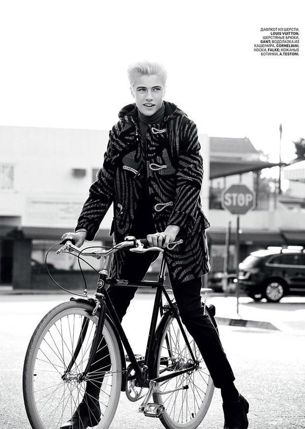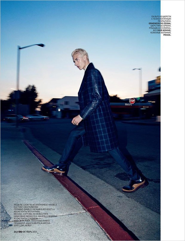 “Top model Lucky Blue Smith teams up with fashion photographer Doug Inglish and stylist Ekaterina Melnikova for GQ Russia‘s latest edition. Grooming is work of Charles McNair. Casting direction by Lee Kyung Kim.” – Malemodelscene.net