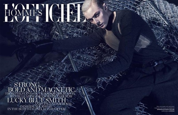 “L’Officiel Hommes Singapore enlists top model Lucky Blue Smith to pose for the cover story of their latest edition captured by fashion photographer Jack Waterlot. In charge of styling were Jack Wang and Jumius Wong with hair styling by Peter Savic and makeup by Anthony Nguyen.” – Malemodelscene.net