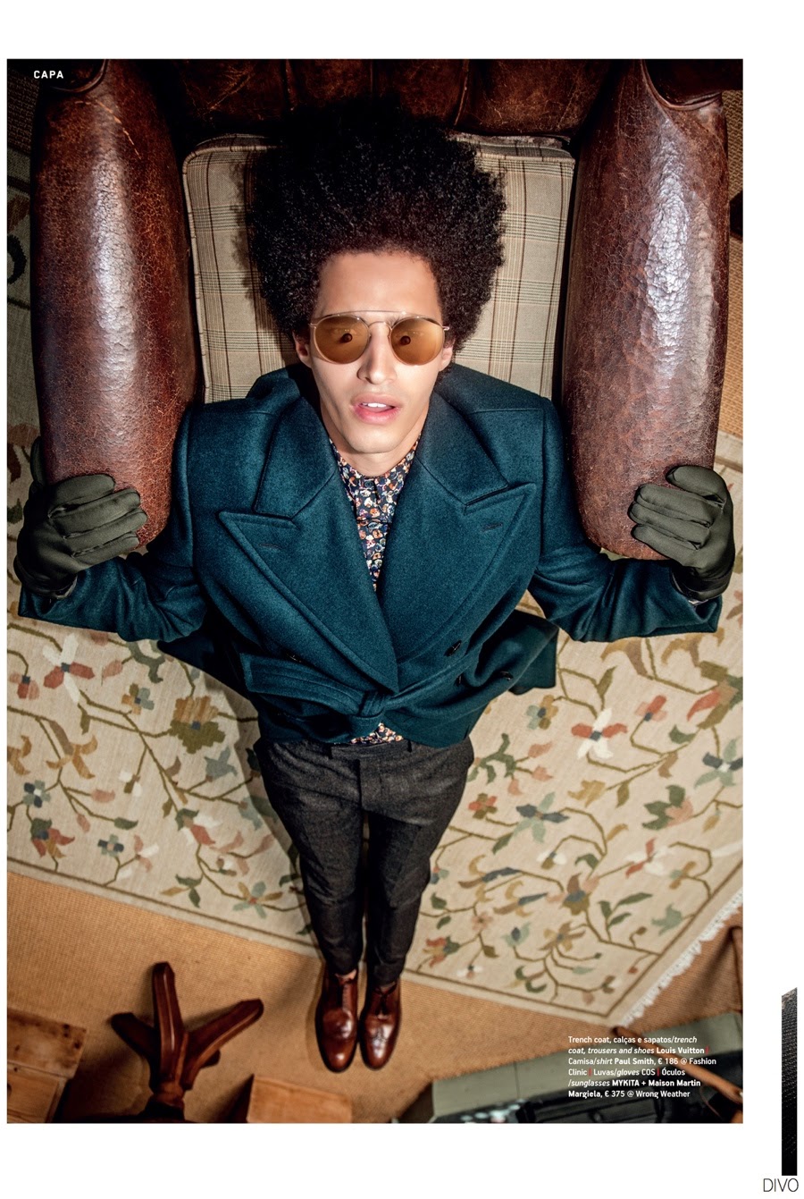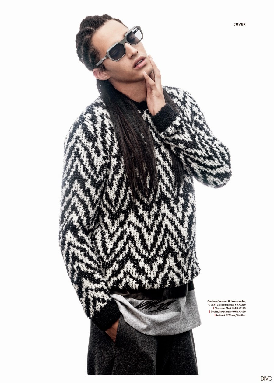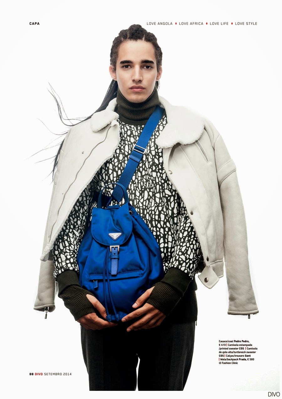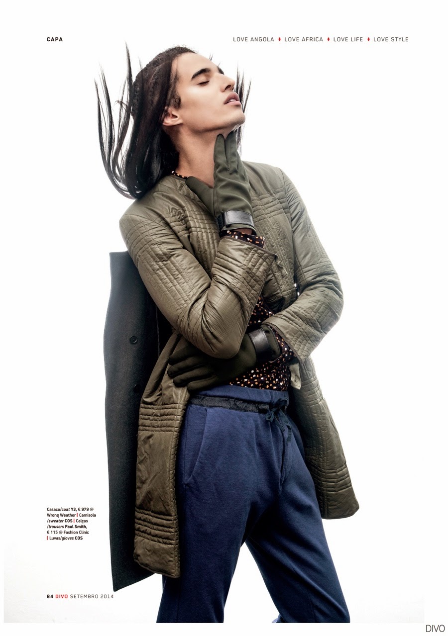 “The Fashion Issue-Fall is in full swing for DIVO’s September 2014 issue. Top Portuguese model Luis Borges is enlisted for the magazine’s cover, connecting with fashion photographer Orlando Gonçalves. Rocking different hairstyles, impressive fall coats and other cool weather essentials, Luis is outfitted by stylist Nelson Vieira for the timely fashion editorial. / Makeup by Tinoca. Hair by Bruno Bessa.” – TheFashionisto.com