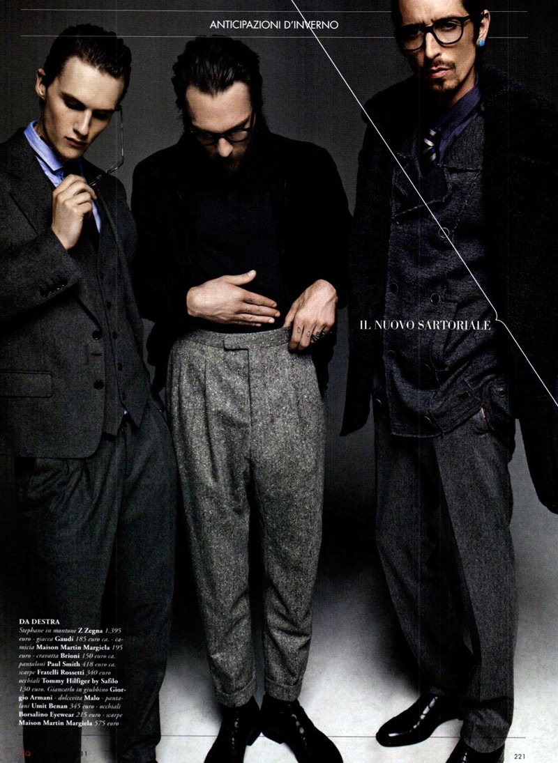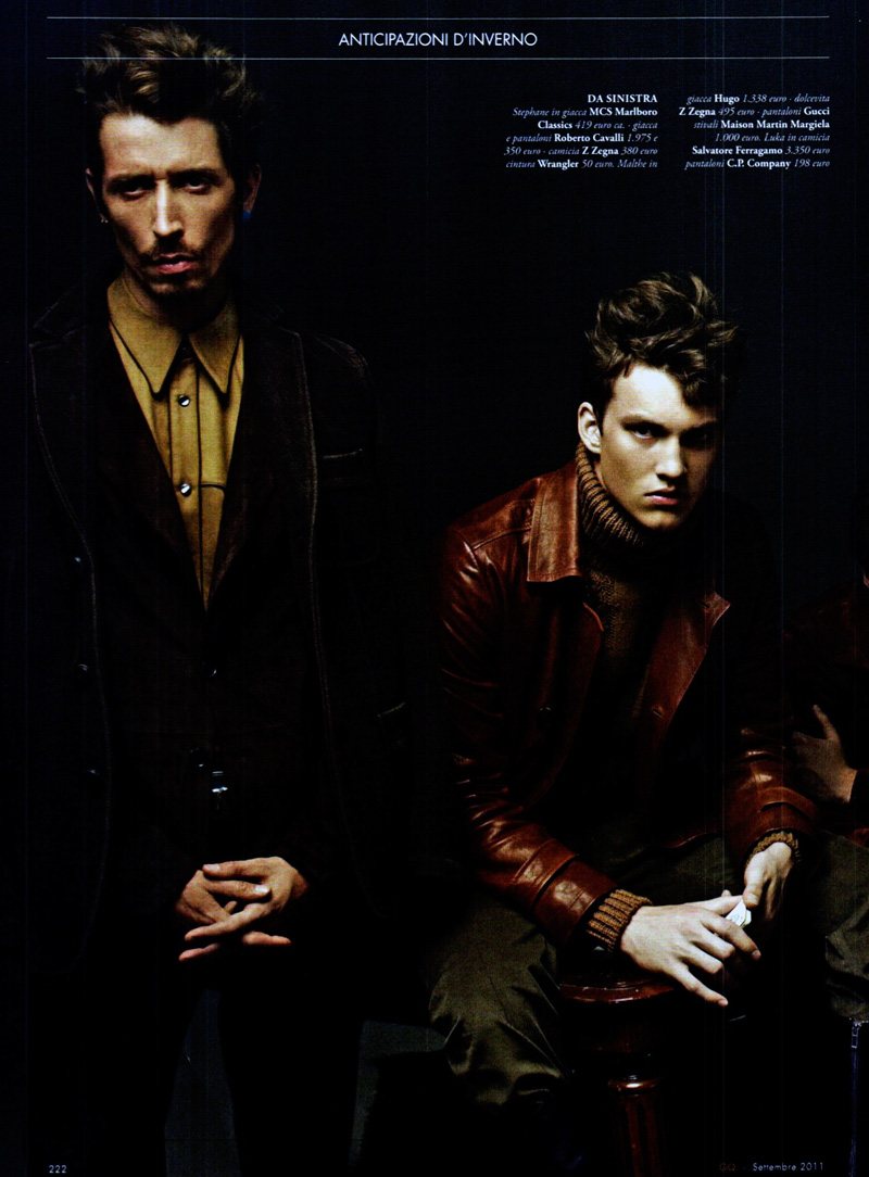 The Group Project–Shooting a story for the September issue of GQ Italia, Emilio Tini creates yet another fantastic story with the help of stylist Elisa Anastasino. Coming together for the collections spectacular, Luka Badnjar, Peter Bruder, Malthe Lund Madsen, Stephane Olivier and Giancarlo are clad in rich garments from labels that include Ermenegildo Zegna as well as Roberto Cavalli. Courtesy of – thefashionisto.com