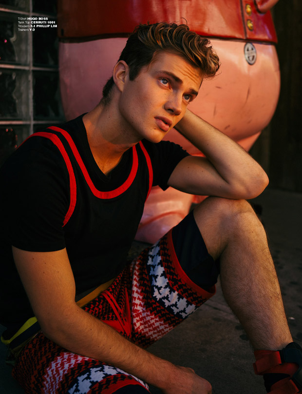 For Lucky Luke story stylist Charlie Ward selected pieces from Tommy Hilfiger, Dolce & Gabbana, MSGM, Hanes, Vintage Guess, Adidas, 3.1 Phillip Lim, Hugo Boss, Cerruti 1881, Y-3, Martine Rose, Ami Paris, and Vintage D&G. Assistance by Vera Rao. ” – Malemodelscene.net