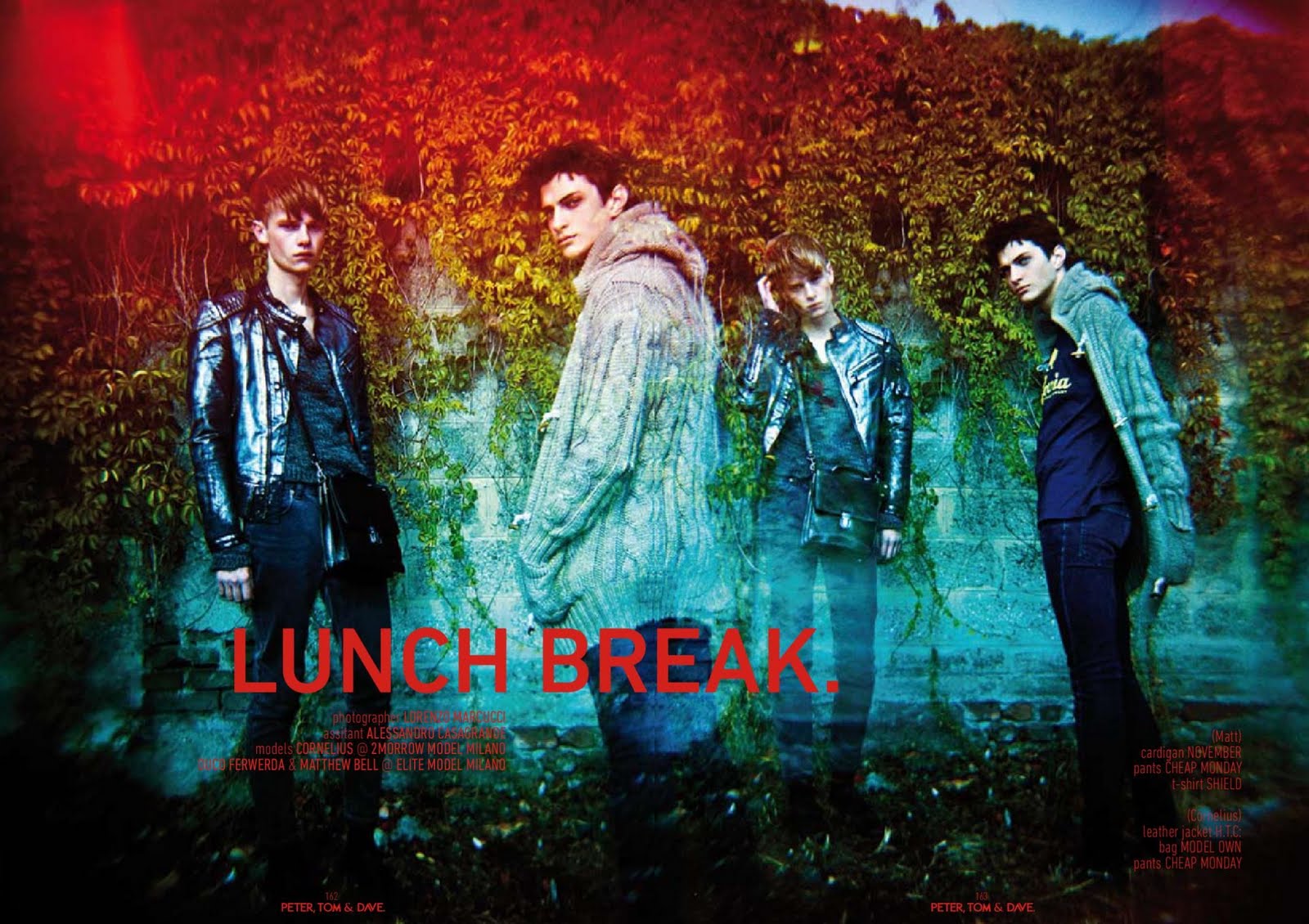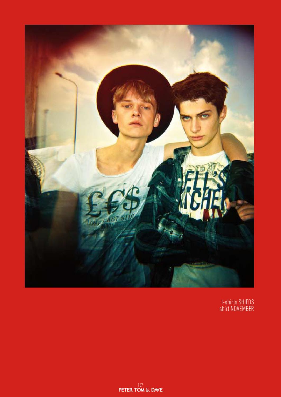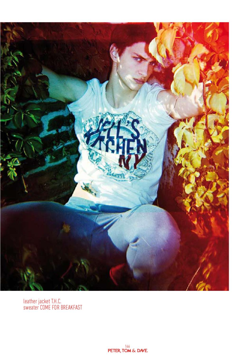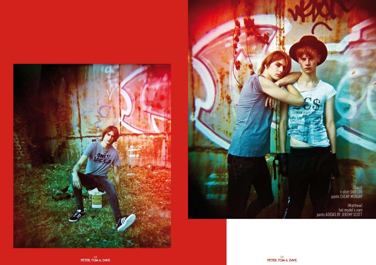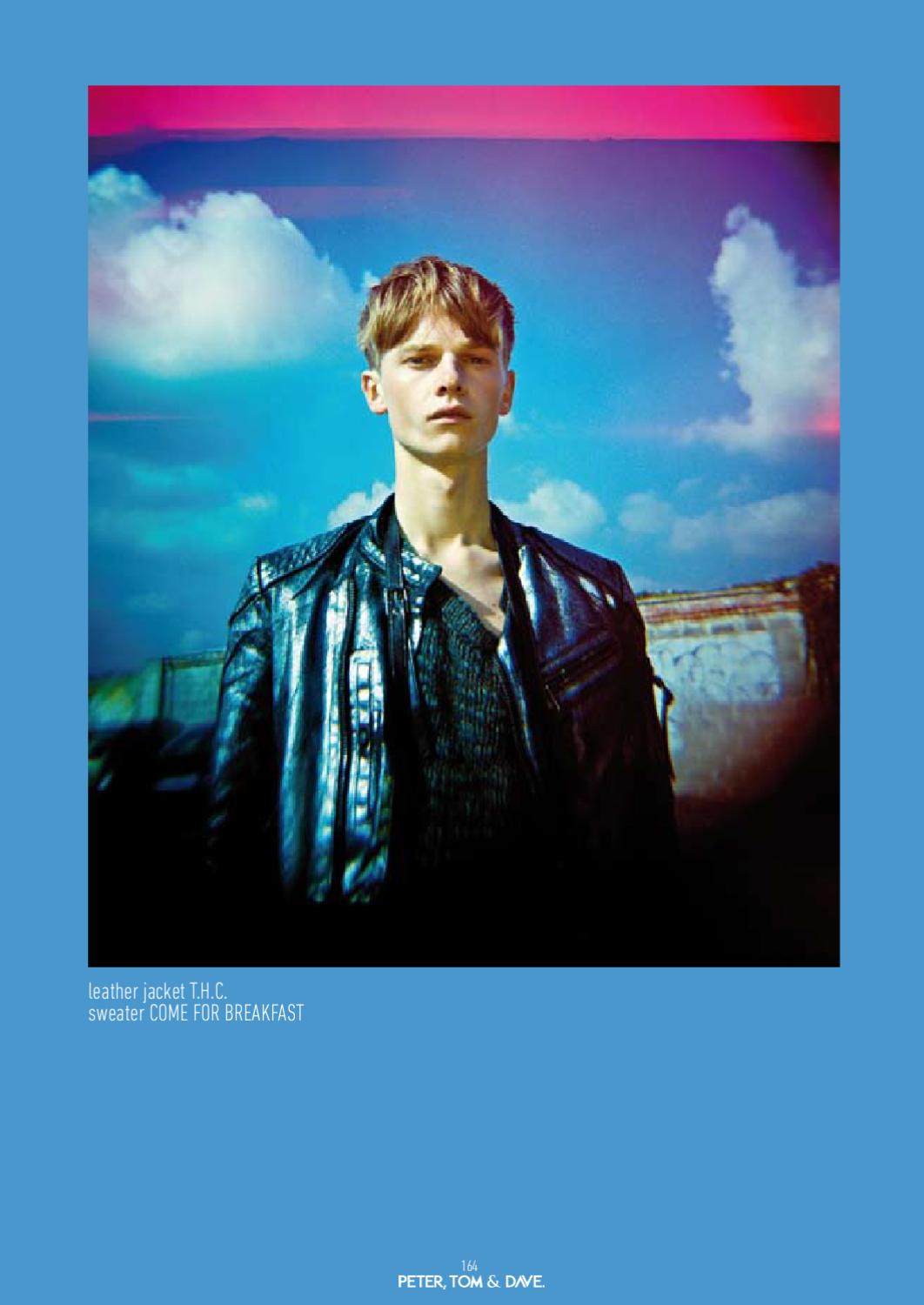 Matthew Bell, Cornelius Carol and Duco Ferwerda are captured by Lorenzo Marcucci in this colorful and hypersaturated shoot for Peter, Tom & Dave’s latest issue. The colorful mirage effects remind us of the popular application Instagram. Courtesy of – hommemodel.blogspot.com