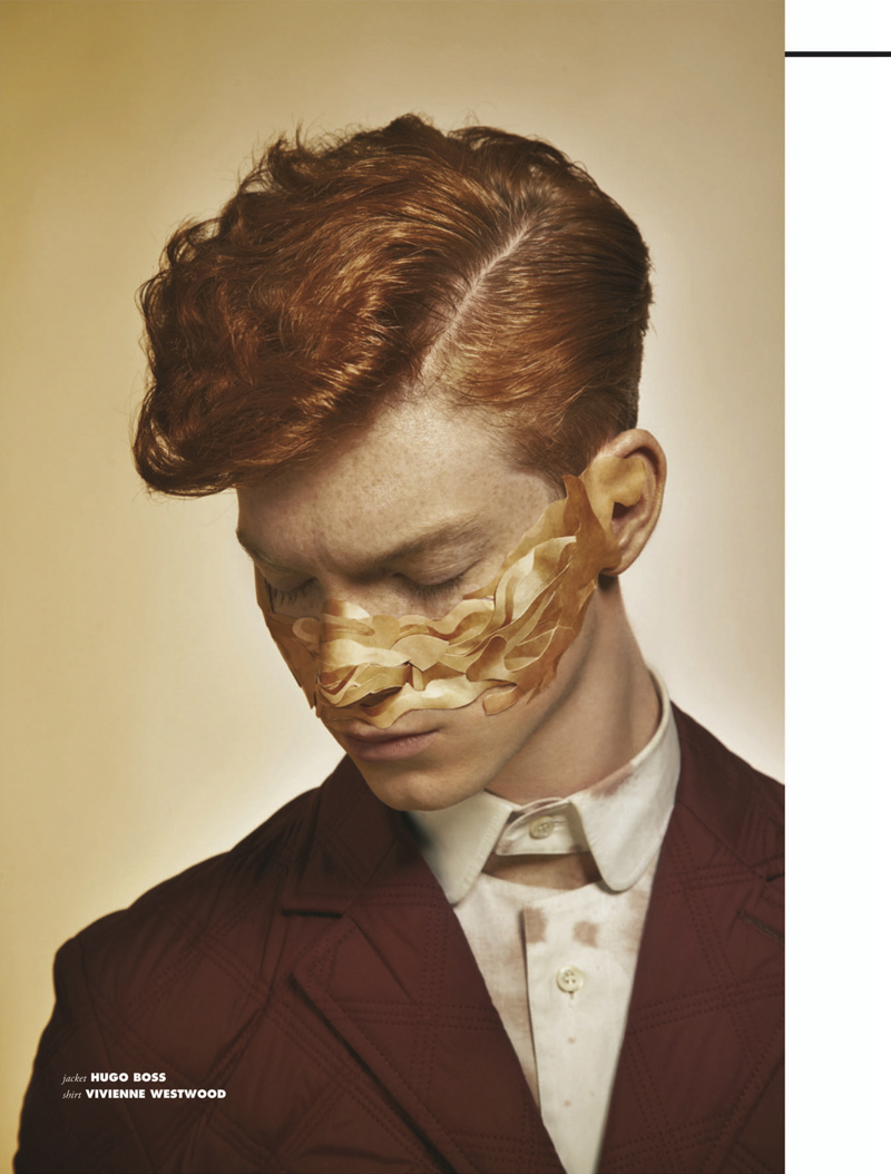Art Meets Fashion–Madame Peripetie wears the hat of photographer and art director for a striking fashion spread in Vision China. The “Camouflage” shoot sees the faces of models Christian Von Pfefer and Oliver Dale transformed into unusual alien artworks. Studio-BOO added stunning body collages, while Recom Farmhouse took control of the retouching. / Styled by Stella Gosteva. Makeup by Marina Keri. Hair by Jazz Topalusic. Set by Matylda Krzykowski. Courtesy of – thefashionisto.com