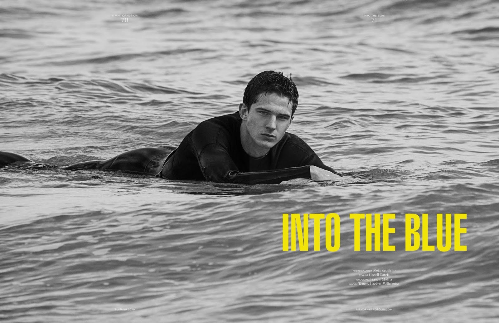 “”Into the blue” is the title of this cover story by Gissell Gracia featuring Tommy Hackett groomed by Francis Molina and photographed near Barcelona by Alejandro Brito for American fashion magazine Man of Metropolis.” – morphoman.blogspot.com/2019/09/man-of-metropolis-14-part-1.html