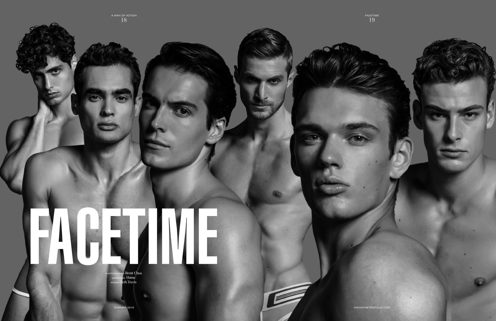 “Facetime” is the title of this story by Seth Travis featuring Josh Sorrentino, Felipe Santos, Justin Petzschke, Andrew Vecchio, Dane Klenk and Harry Rowley groomed by Takanori Shimura and shot by Brent Chua for American fash mag Man of Metropolis.” – morphoman.blogspot.com/2019/09/man-of-metropolis-14-part-2.html