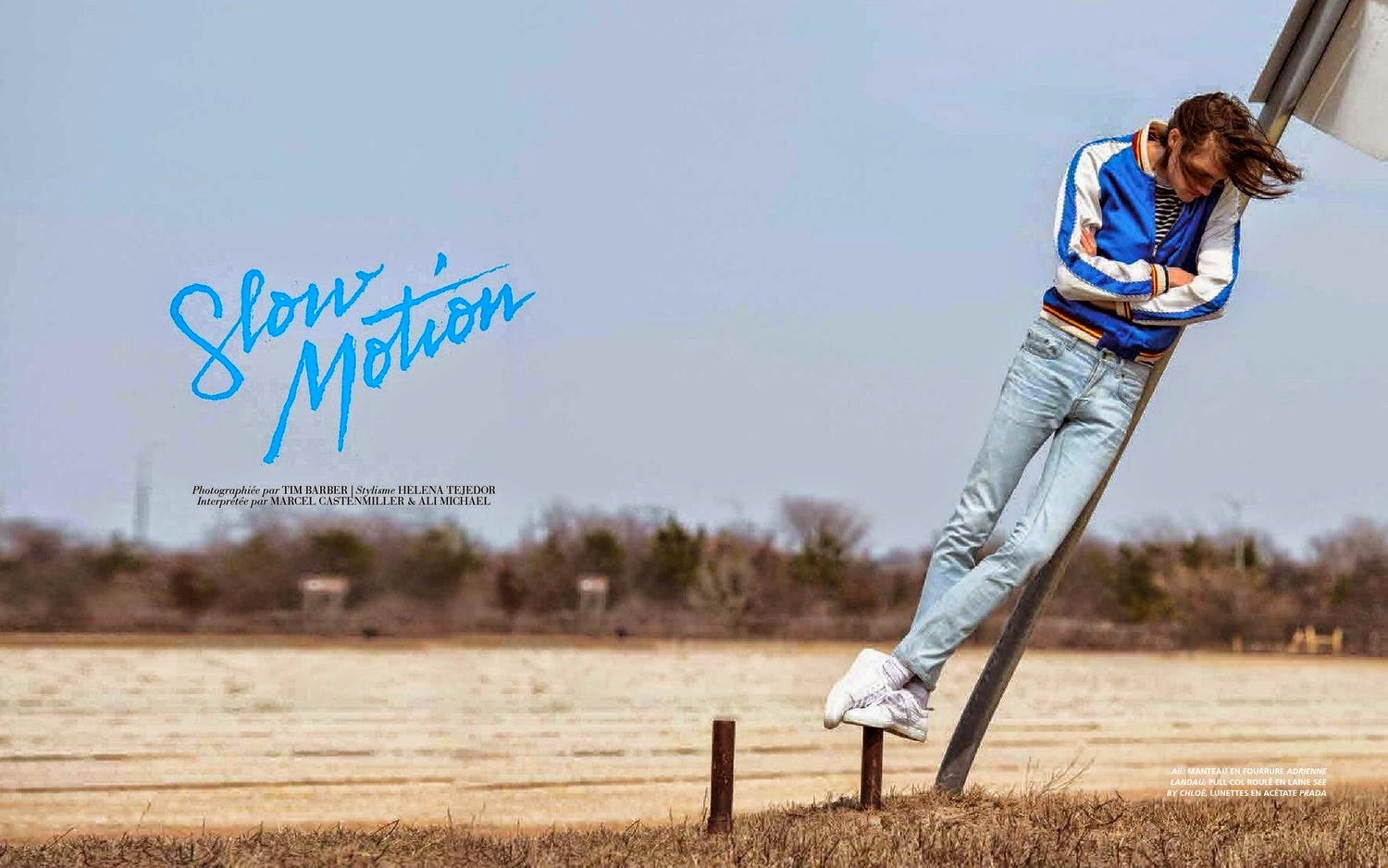 Slow Motion–Canadian model Marcel Castenmiller appears in the most recent issue of L’Officiel Hommes Levant, joining Ali Michael for a story lensed by photographer Tim Barber. Styled by Helena Tejedor, Eleven Paris, Paul & Joe and Levi’s are among the fashion labels represented for a relaxed editorial with a city cool.” – The Fashionisto