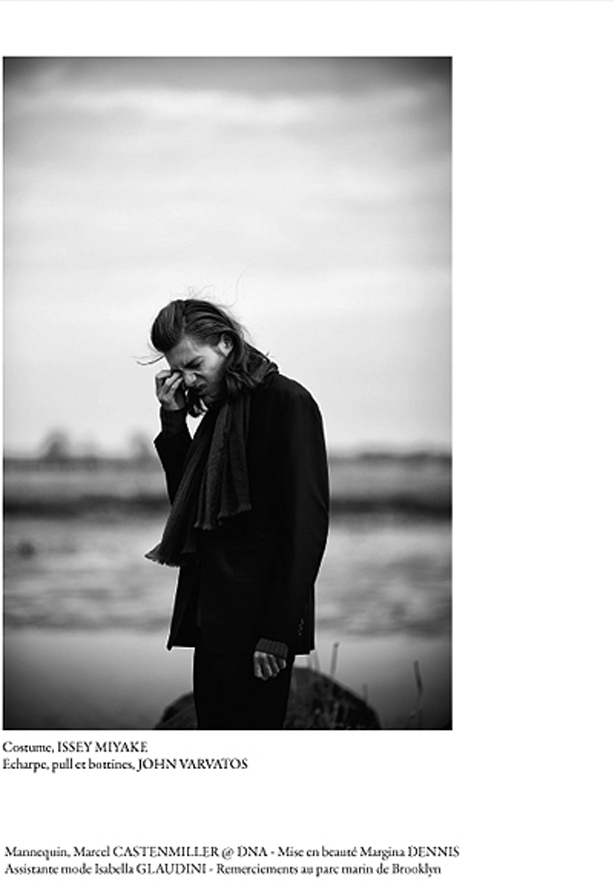 Marcel Castenmiller covers the second issue of French glossy That, shot by Kristiina Wilson and styled by Michelle Carimpong in Prada, John Varvatos, and Band of Outsiders. The black and white shoot features Marcel’s boyish and edgy aesthetic and mixes in a bit of melancholy from the color desaturation. Margina Dennis provided the grooming for the shoot. Courtesy of – hommemodel.blogspot.com