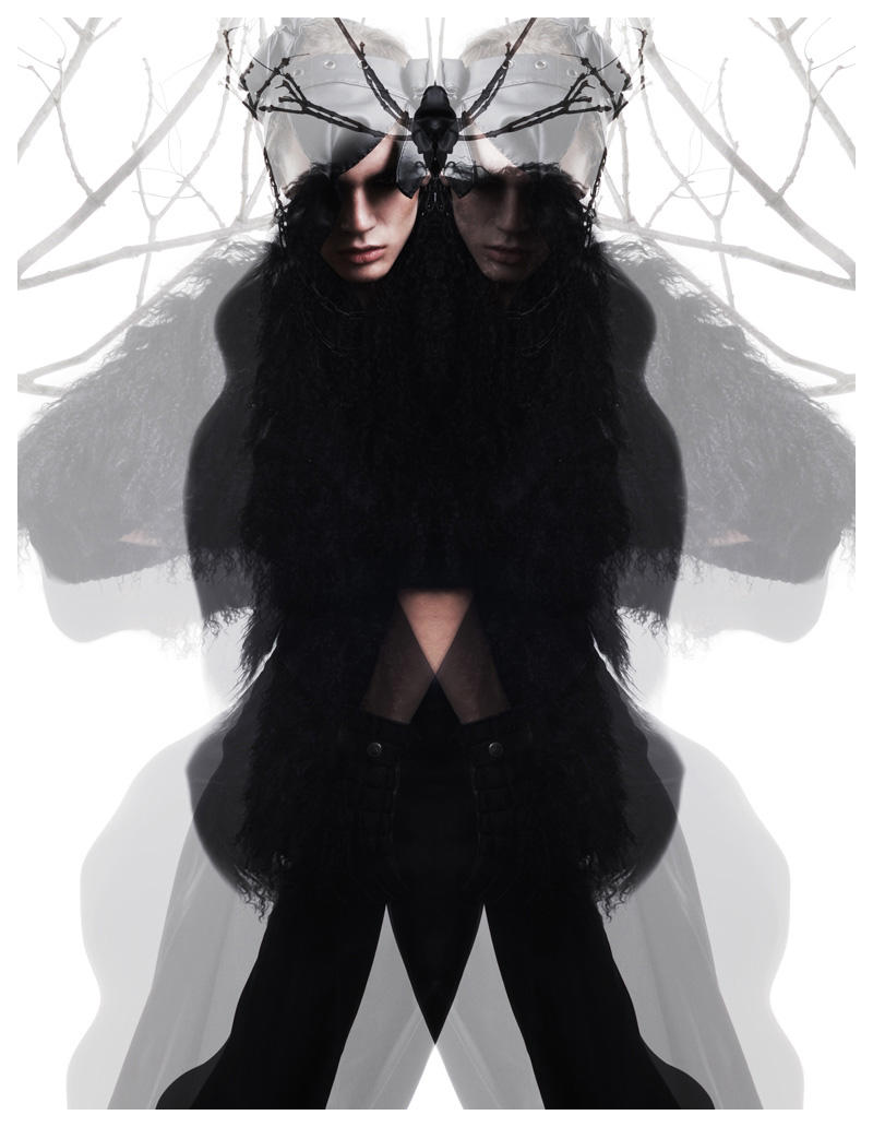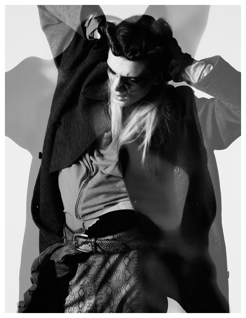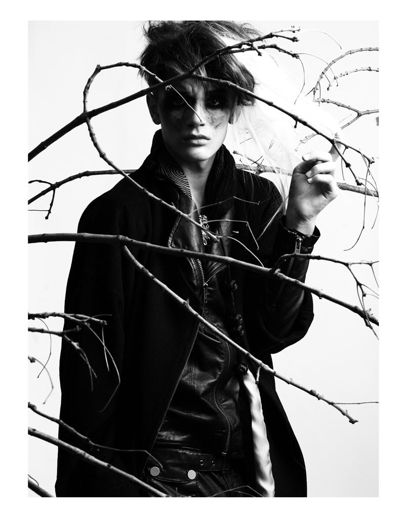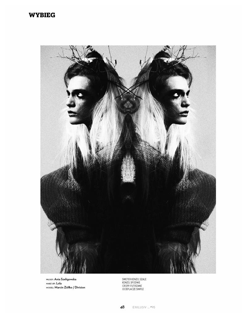 Krzysztof Wyżyński reunites with Division fresh face Marcin Ziółko for a dark Exklusiv outing. Seamlessly transitioning from styling to photography, Wyżyński captures an endearing strangeness found in eclectic layers of the season. / Hair by Ania Szeligowska with makeup by Lola. Courtesy of – thefashionisto.com
