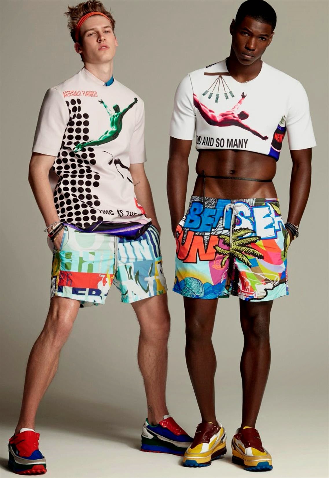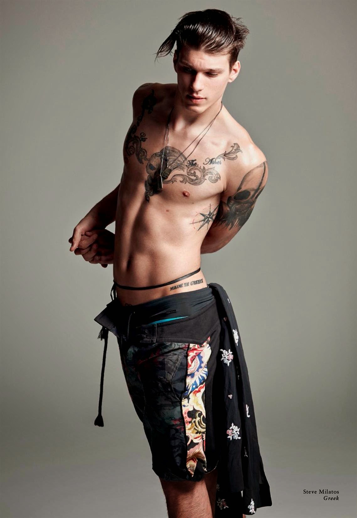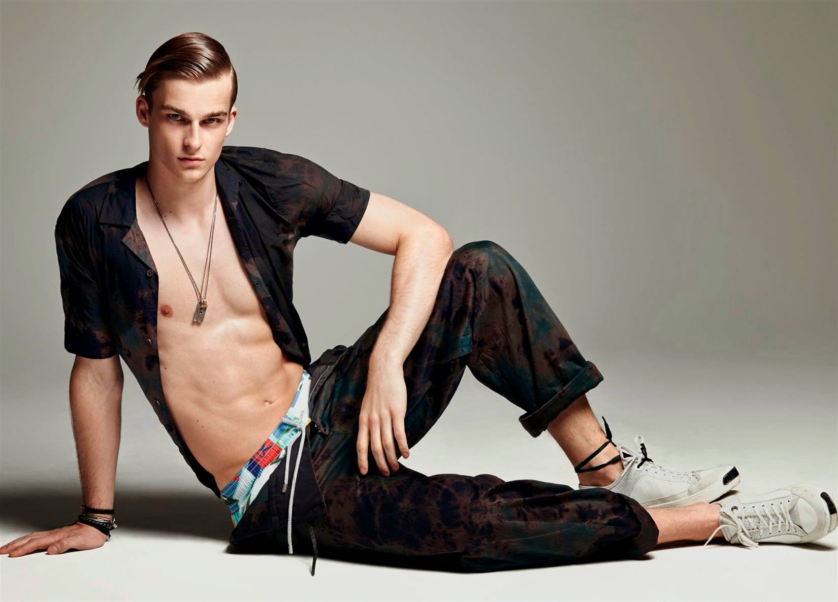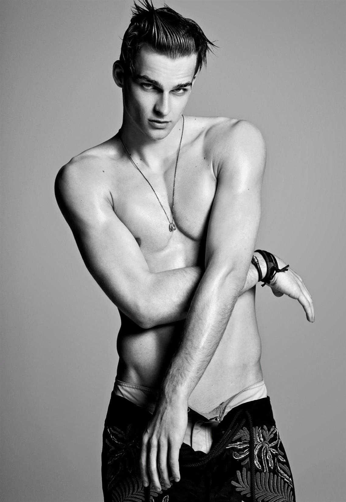 Wild Boys-Photographer Greg Vaughan and stylist David Vandewal join creative forces to shoot a bunch of models for the latest issue of Made in Brazil. With an entire issue dedicated to the concept of global male beauty, Vaughan sets his sights on models Mariano Ontañon, Arran Sly, Travis Smith, Alessio Pozzi, Chris Moore, Thorben Gartner, Steve Milatos, Ronald Epps and Joel Meacock for a variegated fashion spread. Entering the studio with their multifaceted personalities, the models are styled by David Vandewal in an eccentric and almost extravagant wardrobe, where pieces from the likes of Givenchy, Prada and Dolce & Gabbana interchange with the models bare and toned skin. / Photo assistance by Jesse Dreyfuss. Styling assistance by Tas Tobey. Hair by David von Cannon.” -The Fashionisto