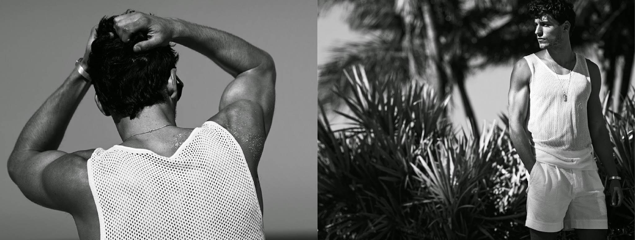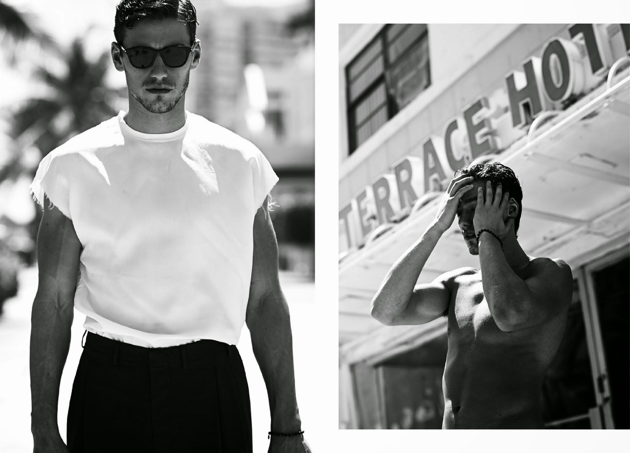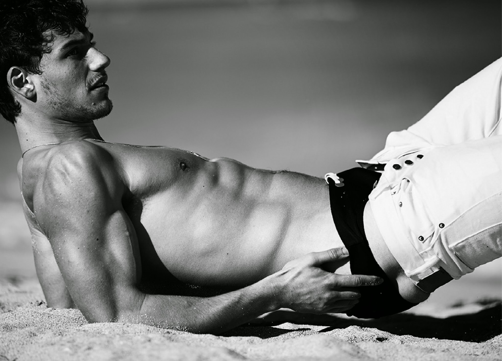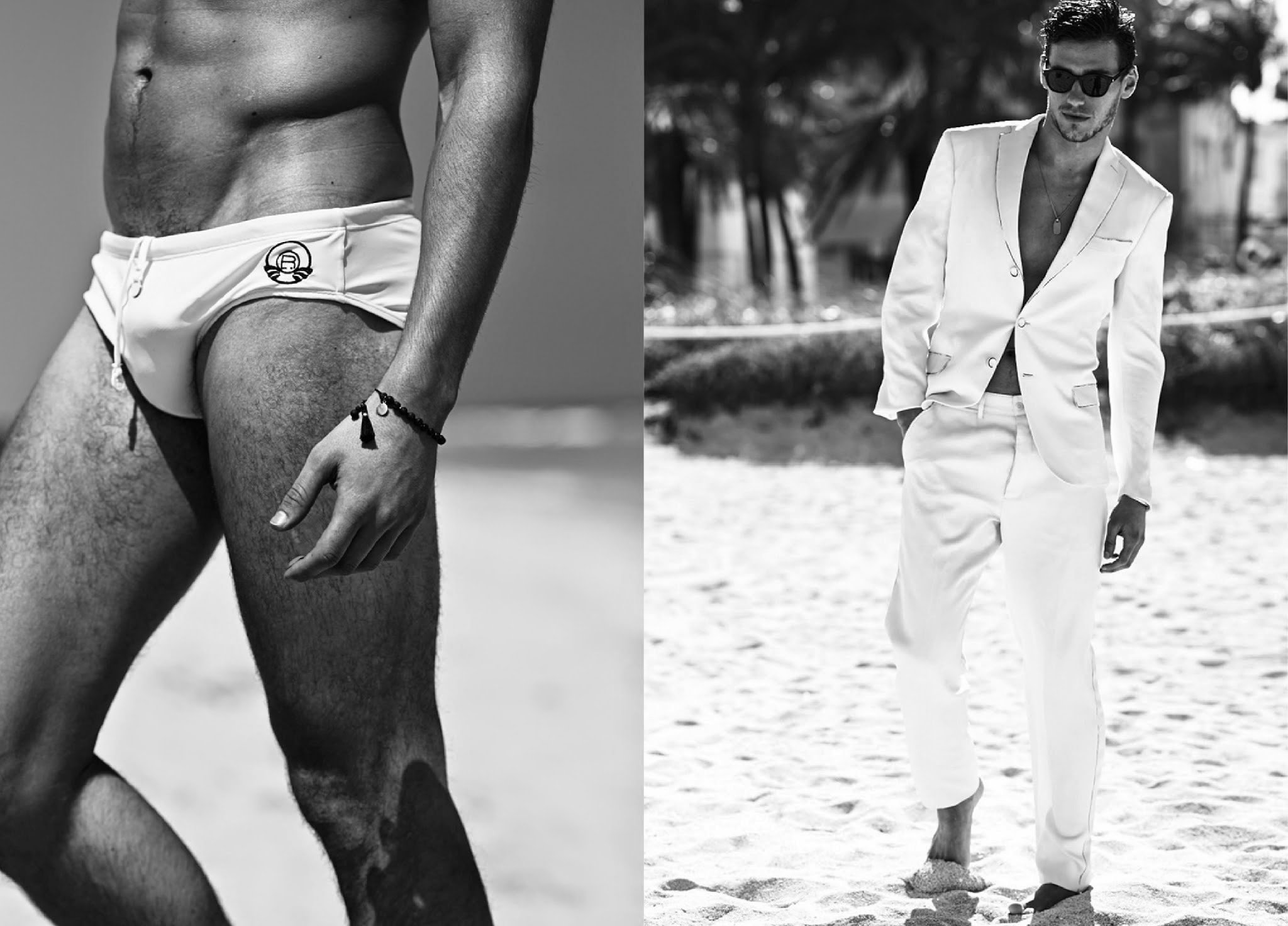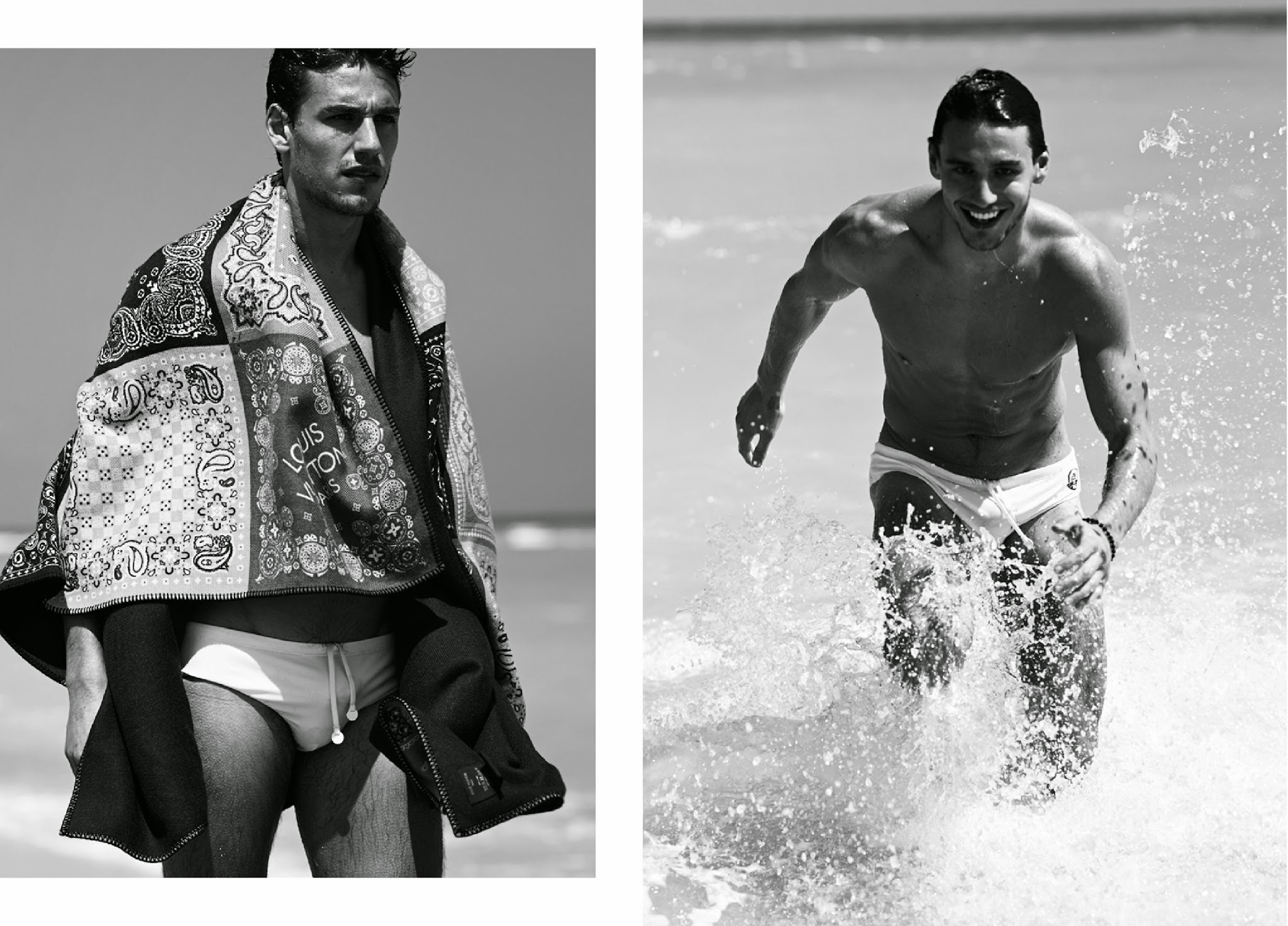 “Swim!–Following his recent appearance on two different covers of Made in Brazil for its latest issue, Argentinian model Mariano Ontañon reunites with photographer Dean Isidro for a stunning black & white fashion spread featured in the magazine’s International Issue. Embracing a relaxed summer mood, Mariano hits the beach in a wardrobe assembled by stylist Michael Russo, which features Calvin Klein Collection luxurious crocodile sleeveless jackets, Louis Vuitton printed beach towels and essential swimsuits.” – The Fashionisto
