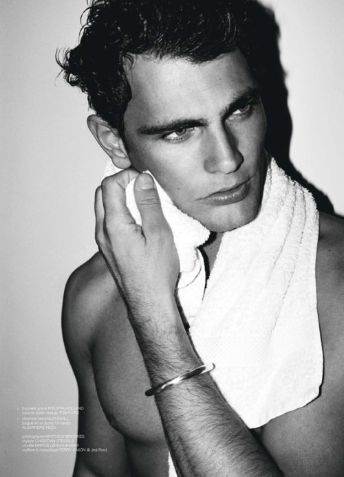 Marios Lekkas by Matthew Brookes in Soon magazine. The Greek beauty was styled by Christian Stroble and groomed by Terry Saxon. Courtesy of – Homotography