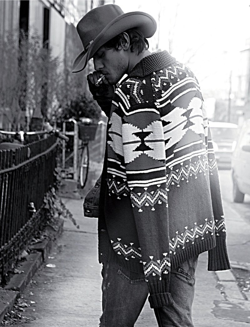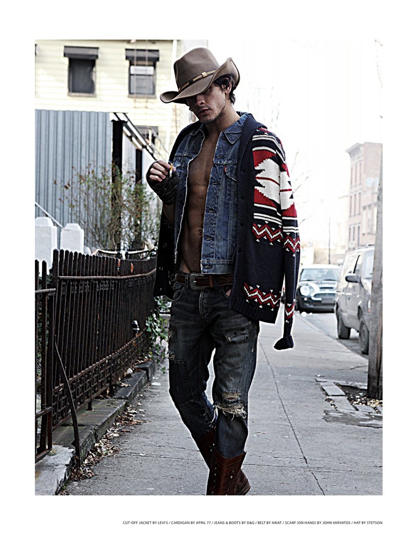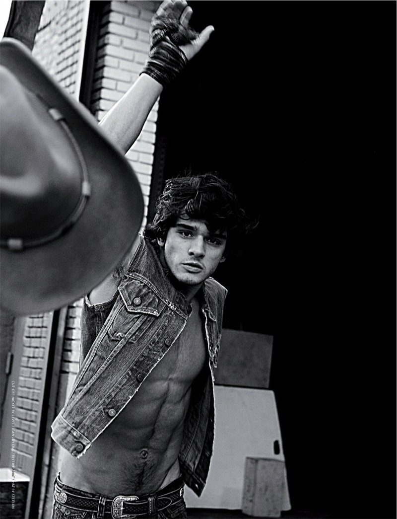 ‘Appearing in the debut issue of Seventh Man photographed by Matteo Zini, Marlon Teixeira demonstrates a certain brawn, while also possessing subtle moments of innocence. Portraying the all to popular lone cowboy, Marlon is outfitted by Julie Ragolia in a number of rugged denim ensembles.’ – Courtesy of thefashionisto.com
