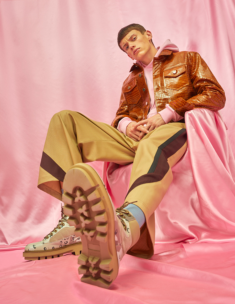 The FW19 collection also sees the brand first footwear style, collaborating with PREGIS to create a military-inspired boot in the camo/leo print of the season.