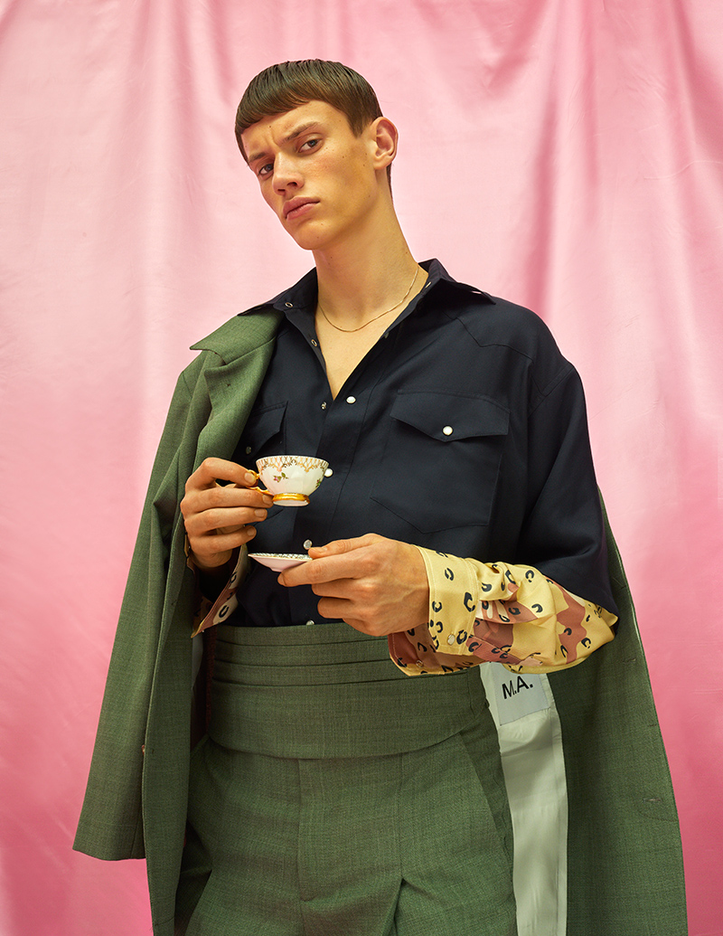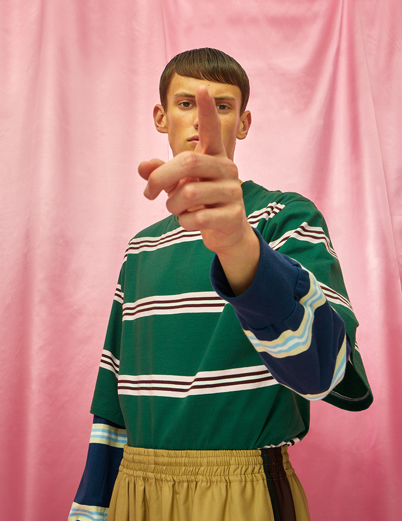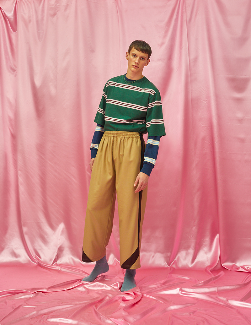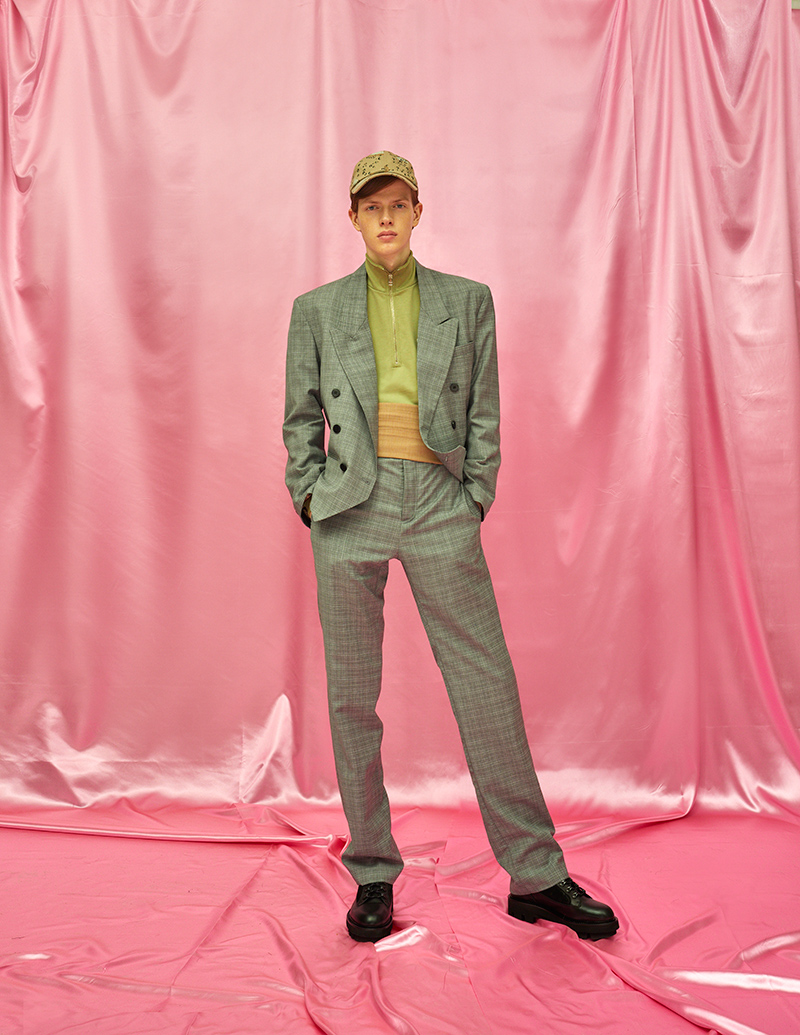 “Although inspired by the new wave in youth culture that took over the early 90’s, Asbjørn elevates the idea of streetwear into a more luxury terrain, using a variety of silhouettes and materials and taking references from not only the sharp tailoring of the 1930’s but also the more playful, bold tailoring of the sixties.