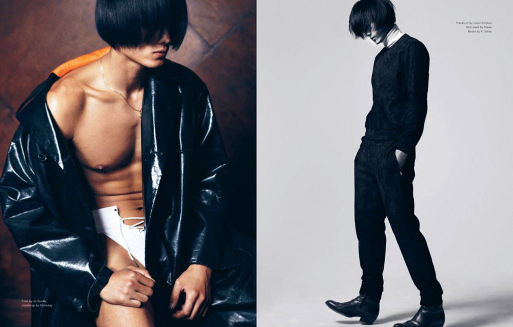 Hao Yunziang is captured by Stefan Zschernitz in Masculine Mystery for the 28th issue of Dansk. Toby Grimditch styles the sexy and subversive shoot. Courtesy of – hommemodel.blogspot.com
