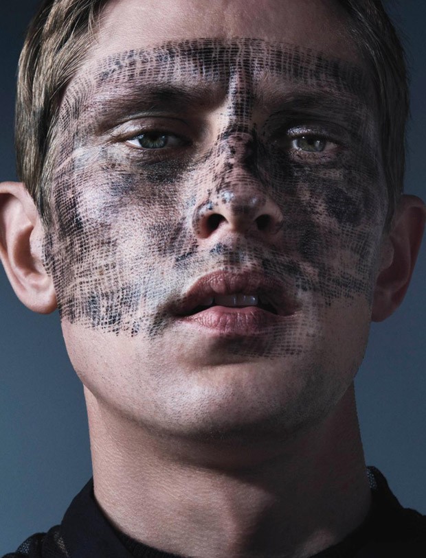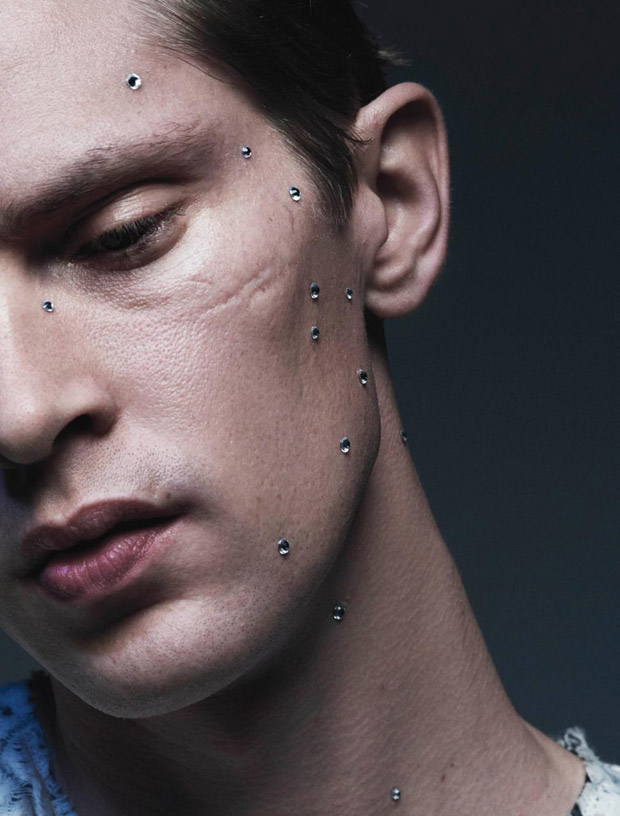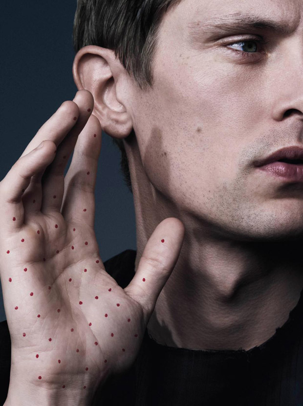 “Supermodel Mathias Lauridsen stars in The Skin You Live In beauty story captured for VMAN Magazine‘s latest edition by fashion photographer Sharif Hamza. In charge of styling was Clare Byrne, with grooming from Georgina Graham (Management Artists) using M.A.C Cosmetics, and hair styling by Shingo Shibata (The Wall Group). Casting direction by Ben Grimes.” – Malemodelscene.net