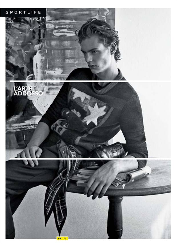 “L’Arte Addosso story coming from the pages of Sportweek Magazine‘s October 2016 edition stars Mats van Snippenberg captured by fashion photographer Adriano Russo. Styling is work of Carlo Ortenzi, with grooming from Mimmo Di Maggio.” – Malemodelscene.net