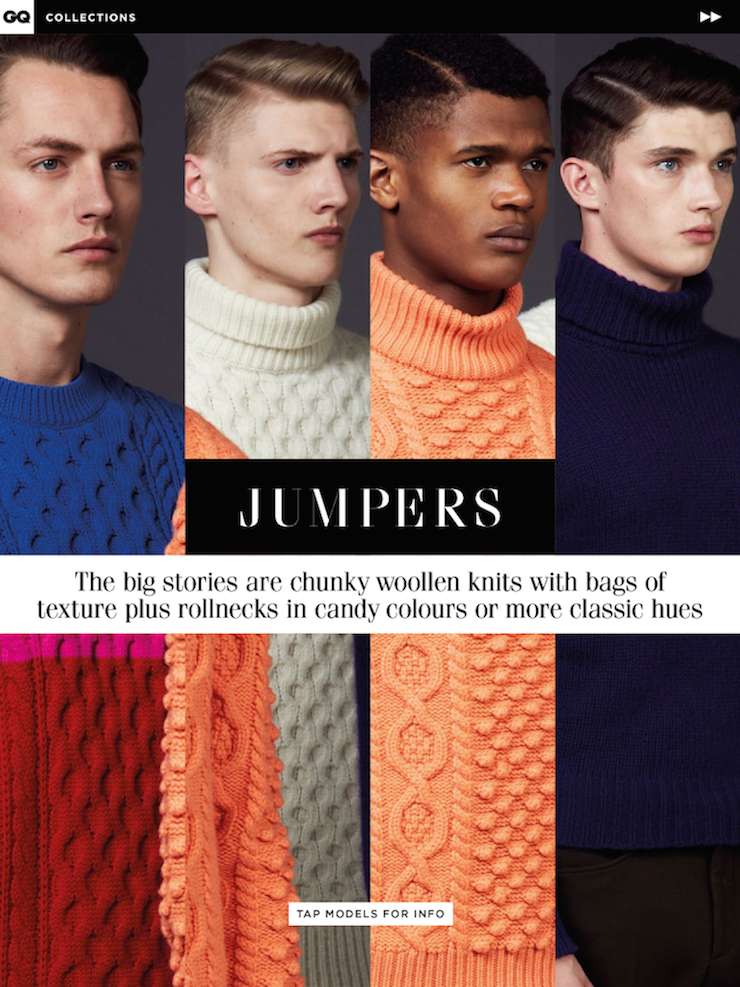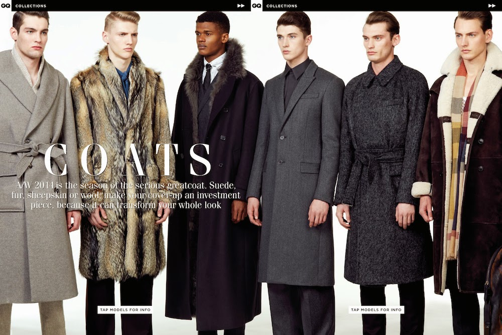 “New Collections-The September issue of GQ UK gives us a preview of some of the boldest trends of the upcoming fall season. Photographed by Blair Getz Mezibov, models O’Shea Robertson, Harrison Griffith, Josh Wicks, Matthew Holt, Charlie Jones and Jakob Hybholt are styled by GQ’s Jo Levin in a desirable fall wardrobe that gives a full spectrum of what we’ll wear in the next months. From Canali’s Japanese inspired luxurious coats to Tom Ford’s glamorous brocades, including Dolce & Gabbana’s sartorial double-breasted suits and Prada’s extravagant furs, the fall collections have never looked so variegated, but at the same time focused on reinventing contemporary menswear. / Styling assistance by Holly Roberts. Hair by Ben Jones. Makeup by Lucy Bridge.” – The Fashionisto