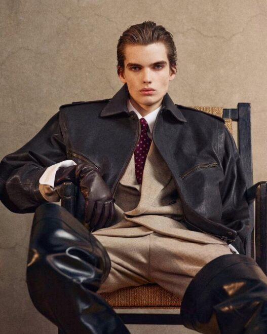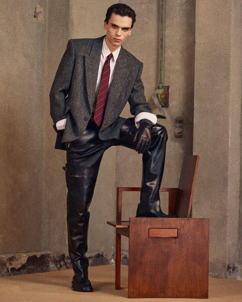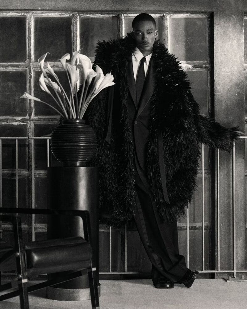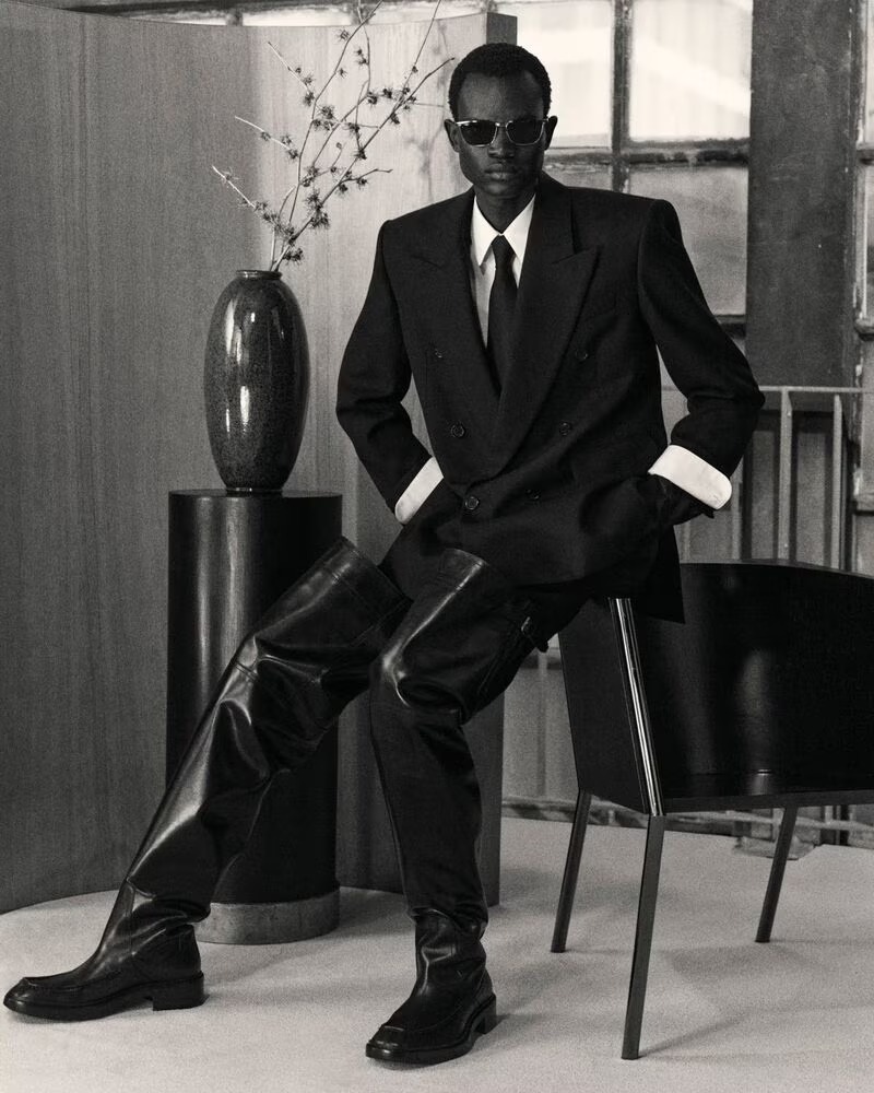 Saint Laurent’s Fall 2025 menswear, under the creative direction of Anthony Vaccarello, is a masterclass in architectural tailoring and cinematic restraint. Captured through the lens of Mark Kean, the campaign stars models Max Paul, Wal Ruop, Nataniel Busa, Chubath Kutien, and Ruben Long, each embodying the house’s signature tension between discipline and seduction.